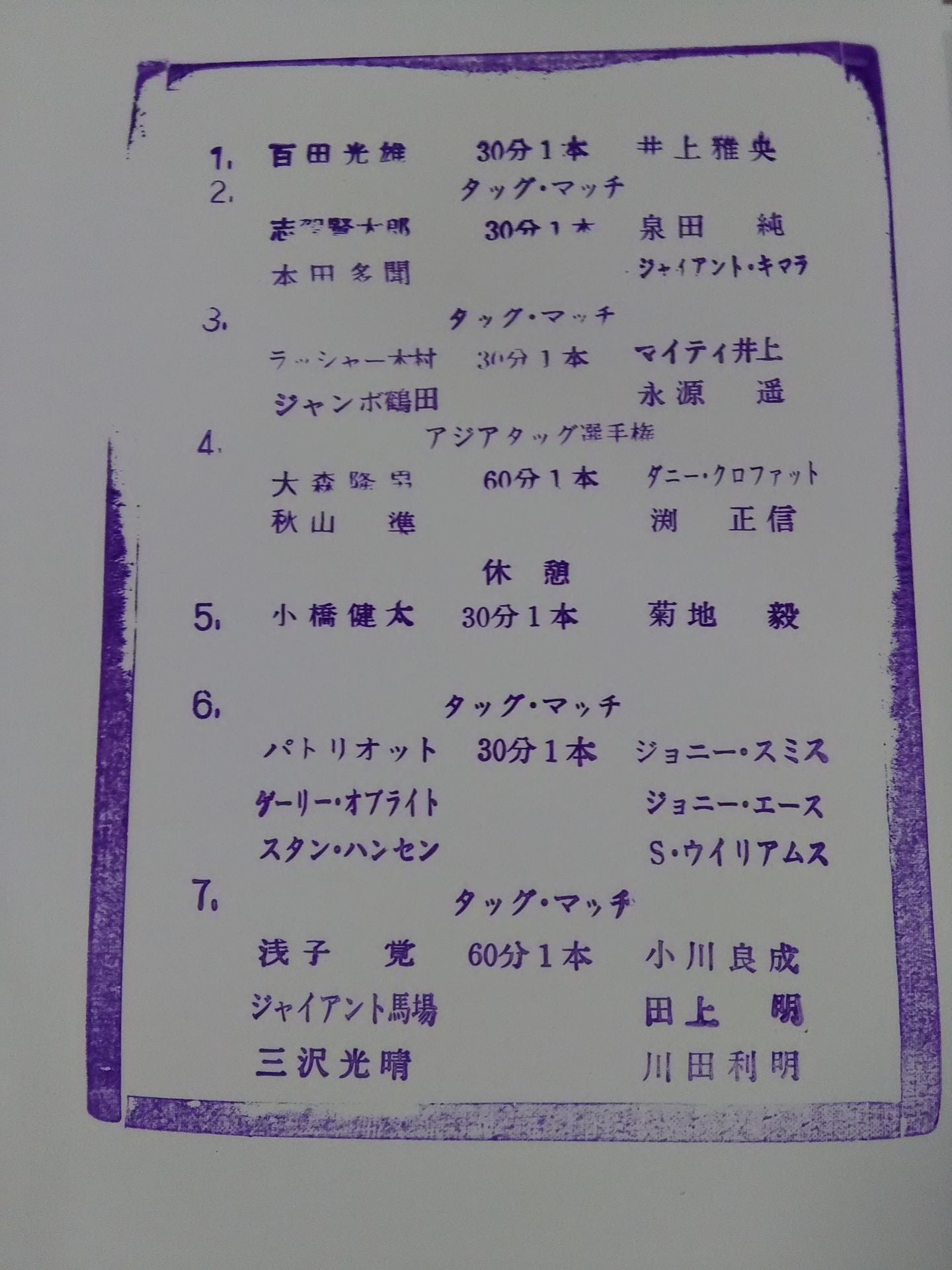 1996年 会場:後楽園ホール / スタンプあり:三沢光晴&ジャイアント馬場&浅子覚vs川田利明&田上明&小川良成 / スタン・ハンセン&ゲーリー・オブライト&パトリオットvsスティーブ・ウィリアムス&ジョニー・エース&ジョニー・スミス