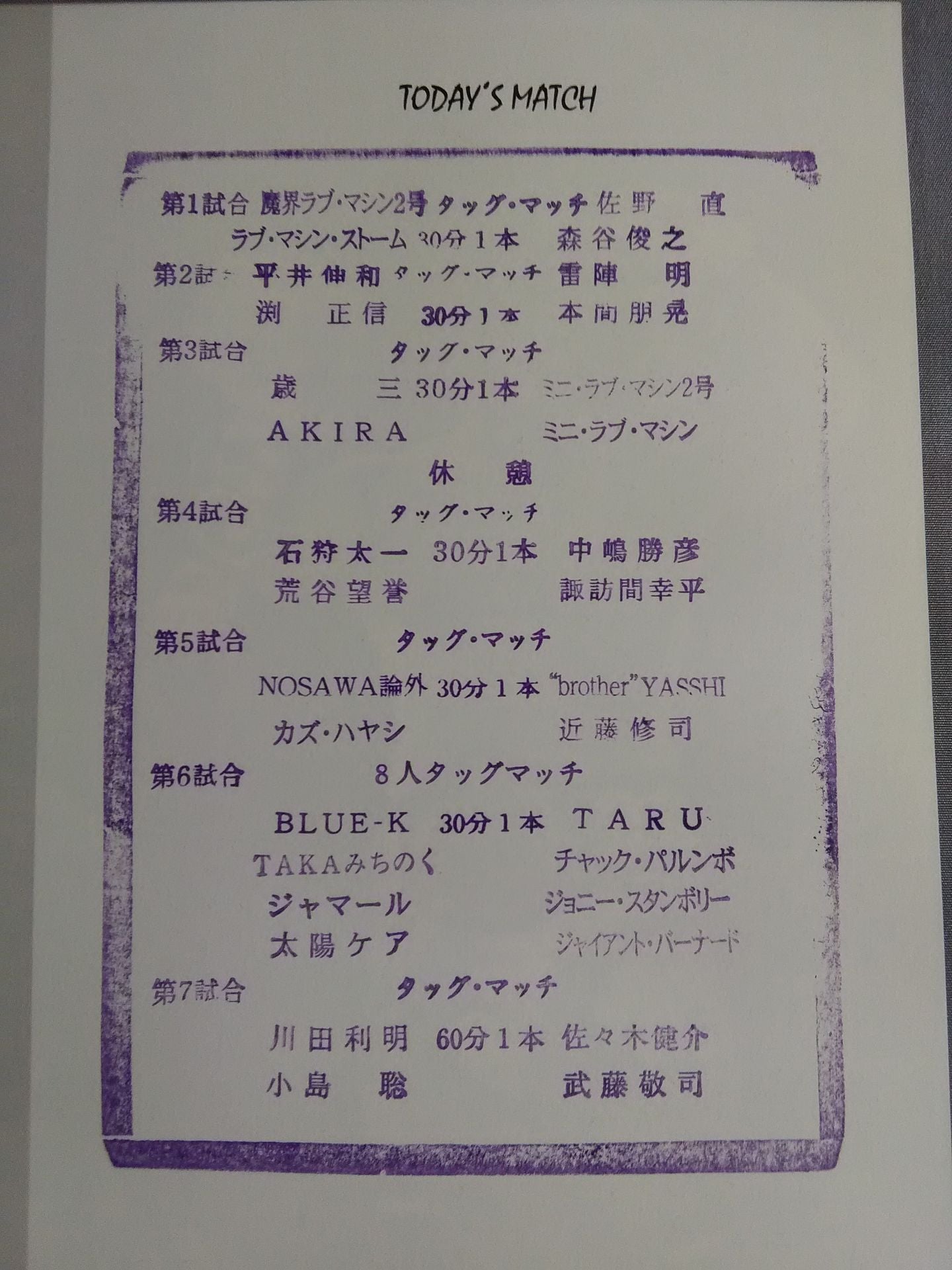 2005年 会場:後楽園ホール(最終戦) / スタンプ付:川田利明&小島聡vs佐々木健介&武藤敬司