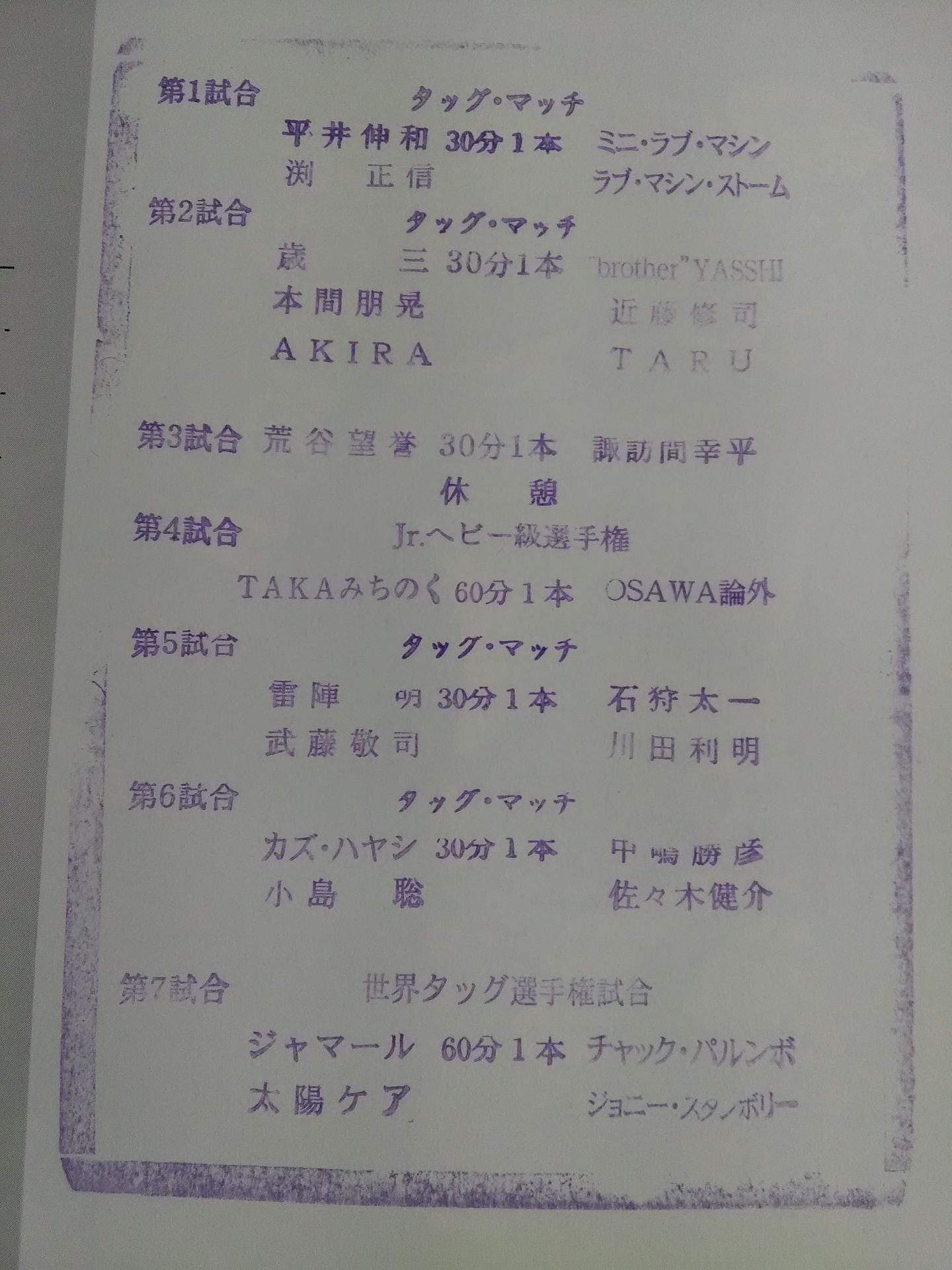2005年 会場:後楽園ホール / スタンプあり:【世界タッグ選手権試合】太陽ケア&ジャマールvsジョニー・スタンボリー&チャック・パルンボ