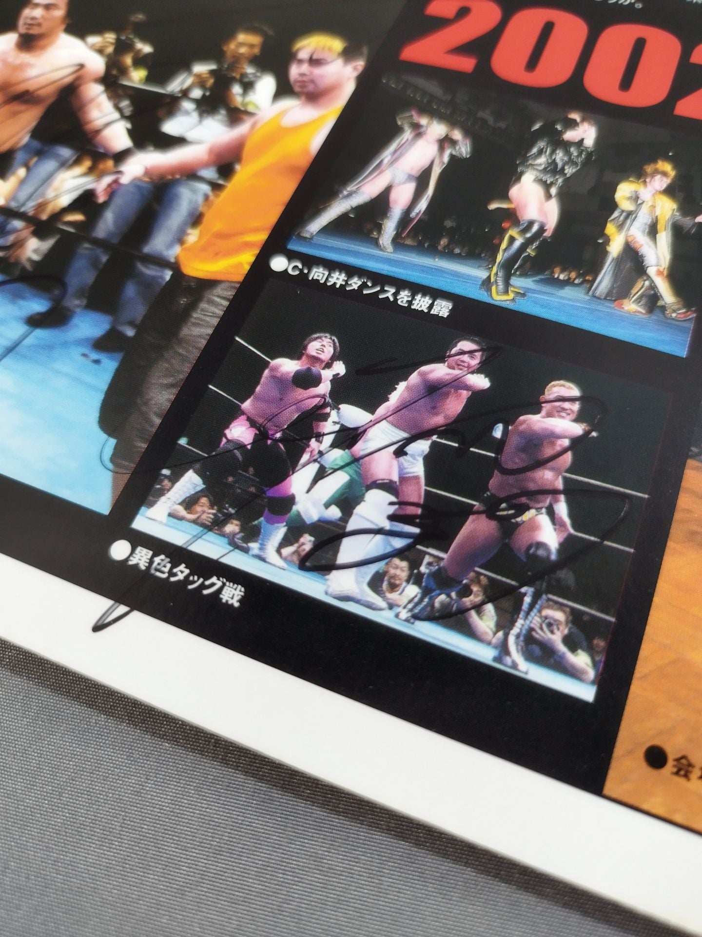 2002年 冬木弘道、高木三四郎、TAKAみちのく、他3名、計6選手の直筆サイン入り!会場:後楽園ホール / 別紙対戦カードあり:金村キンタロー&黒田哲広vs高木三四郎&TAKAみちのく