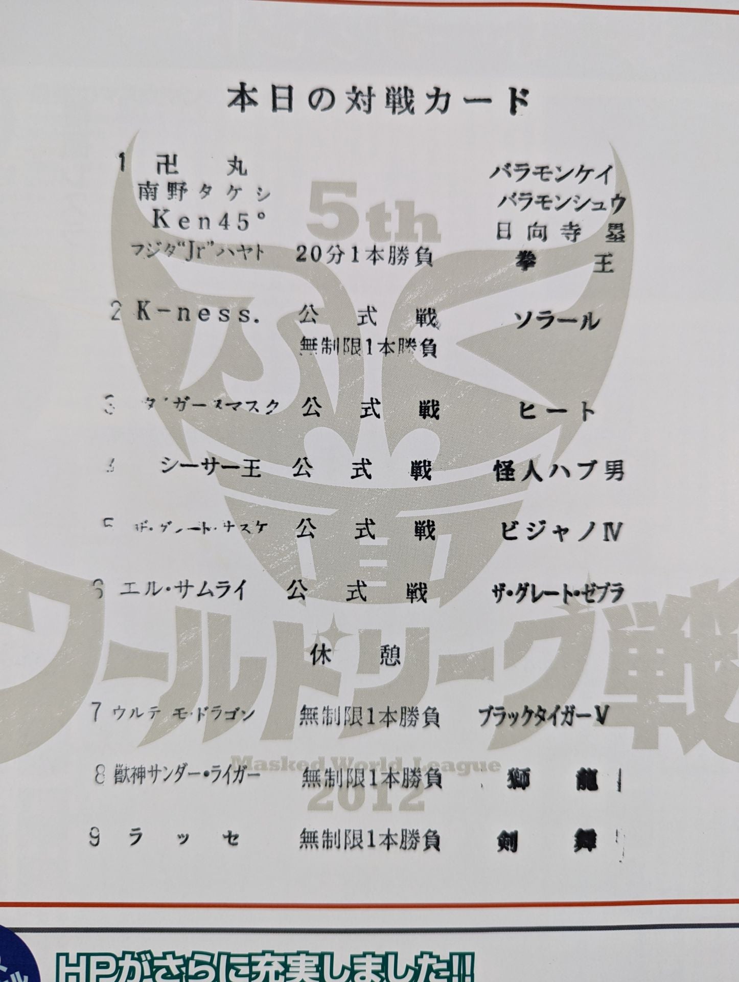 会場:後楽園ホール / スタンプあり:【1回戦】ラッセvs剣舞 第5回ふく面ワールドリーグ戦