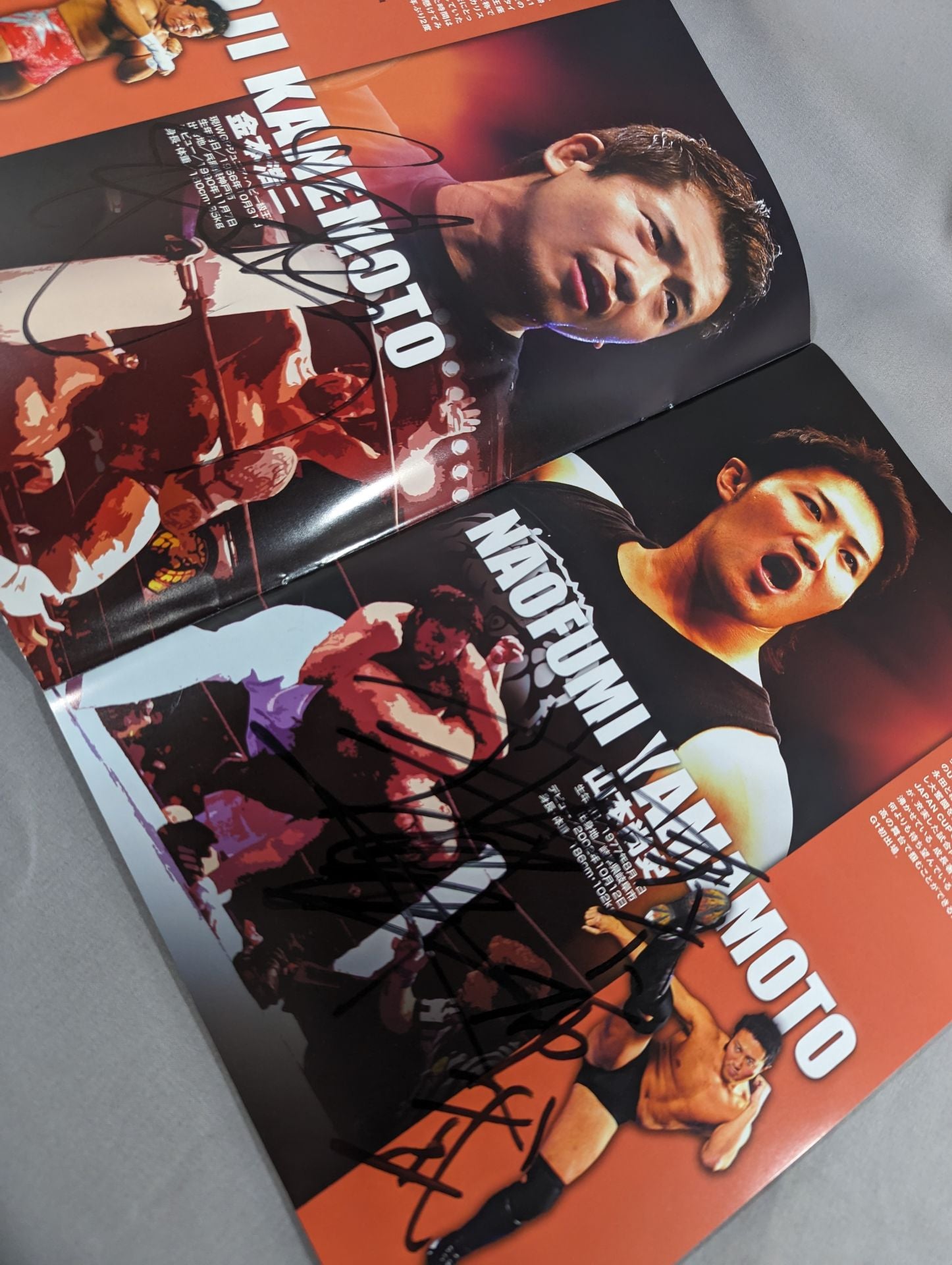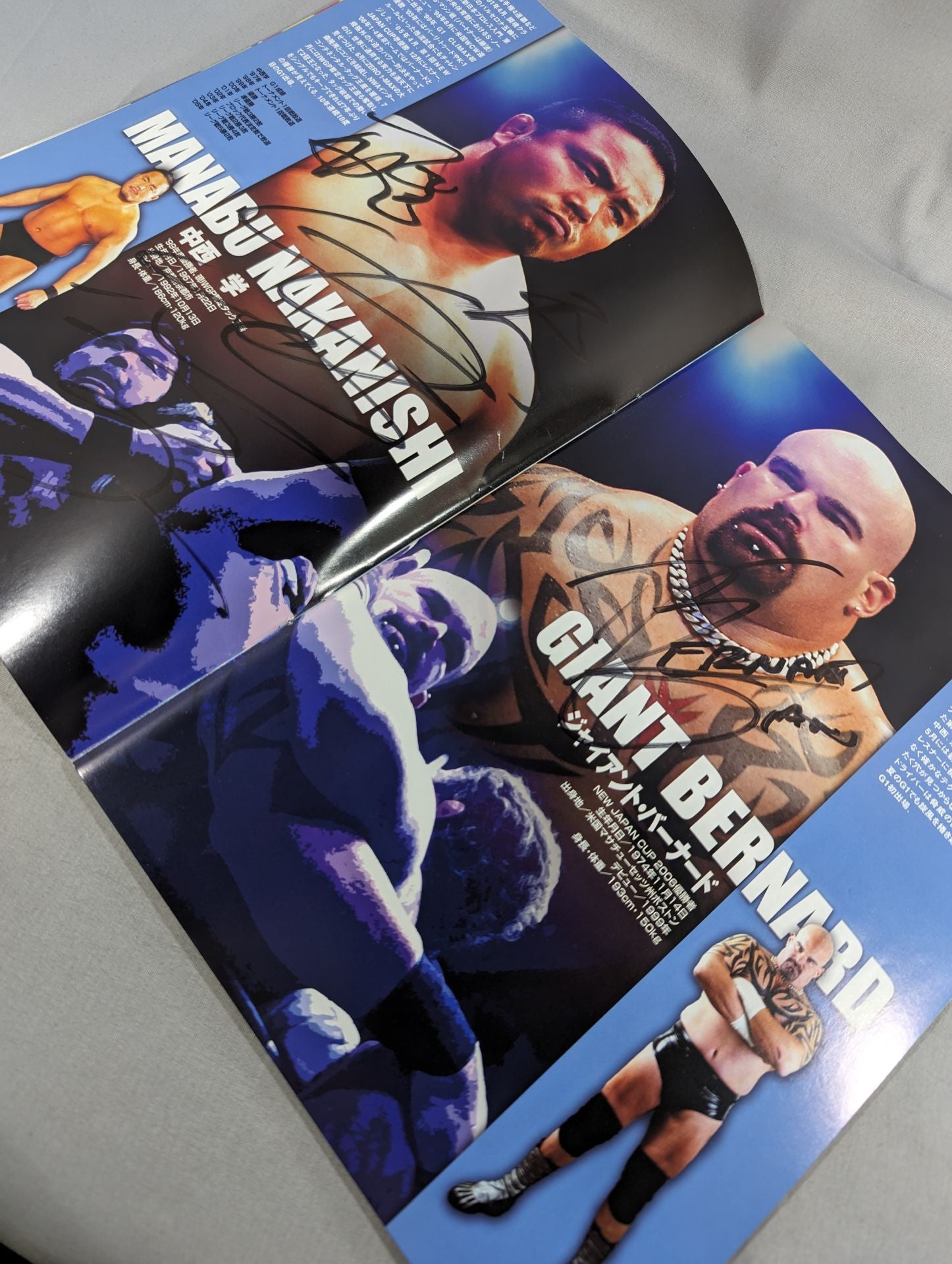2006年 天山広吉(表紙)、サイモン・ケリー猪木、中西学、ジャイアント・バーナード、永田裕志、金本浩二、山本尚史(ヨシタツ)、蝶野正洋、飯塚高史、矢野通、タイガーマスク、田口隆祐、井上亘、稔、邪道、外道、プリンス・デヴィット(フィン・ベイラー)、裕次郎(高橋裕二郎)、平澤光秀、内藤哲也、石井智宏、宇和野貴史 以上 22名直筆サイン入り! スタンプあり(2大会分):(8.12 両国)【公式戦】中西学vs小島聡/ (8.12 両国)【G1決勝戦】第2試合の勝者vs第3試合の勝者(小島聡vs天山広吉)