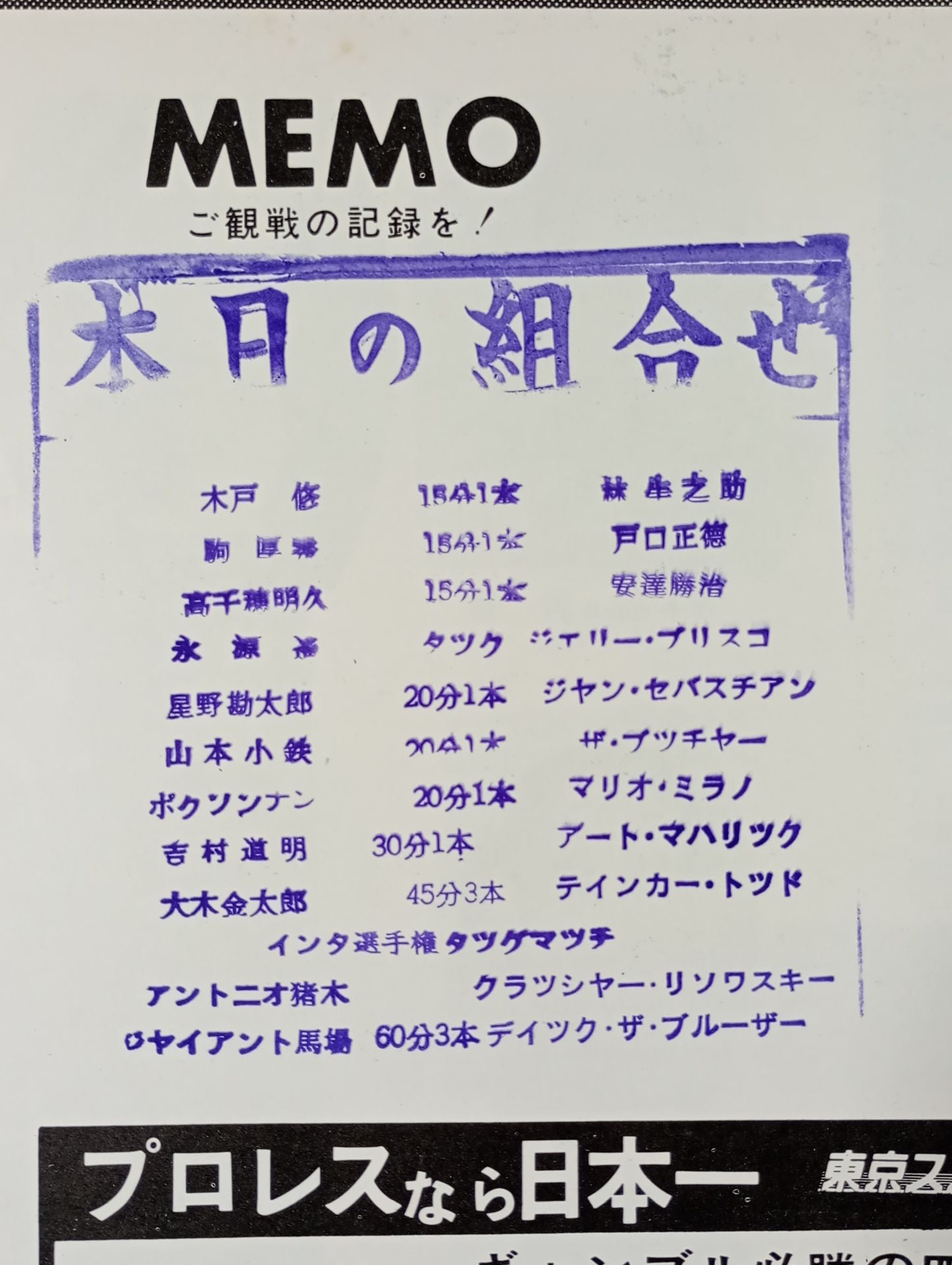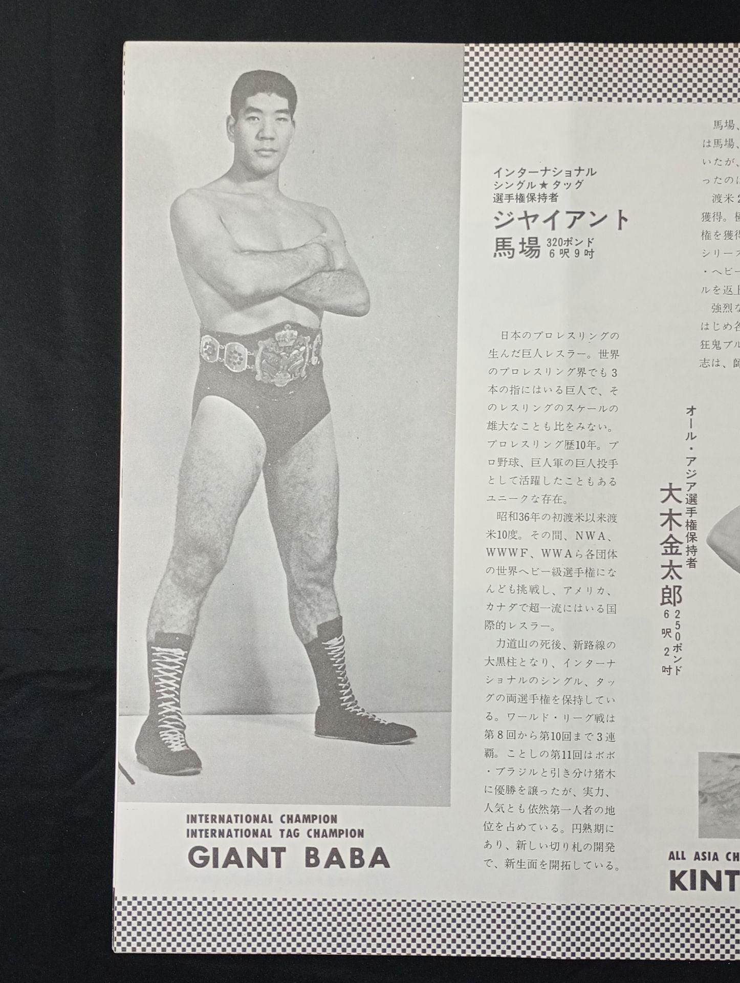1969年 会場:大阪府立体育館 / スタンプあり:【インターナショナルタッグ選手権試合】アントニオ猪木&ジャイアント馬場vsディック・ザ・ブルーザー&クラッシャー・リソワスキー/ 大木金太郎vsティンカー・トッド スペシャル・チャンピオン・シリーズ戦