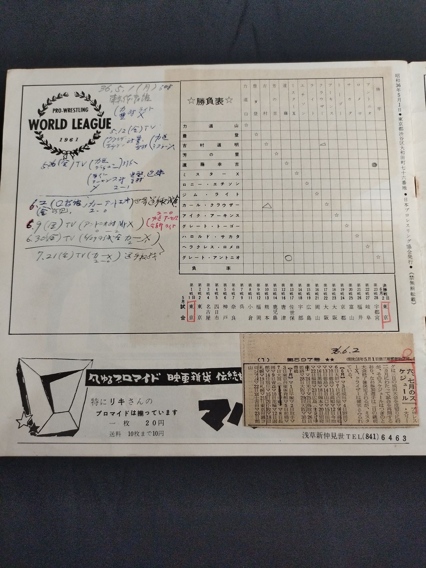 1961年 カール・クラウザー(カール・ゴッチ)初来日シリーズ!5月1日東京体育館大会では吉村道明相手に、ジャーマンスープレックスを日本初公開! スタンプなし