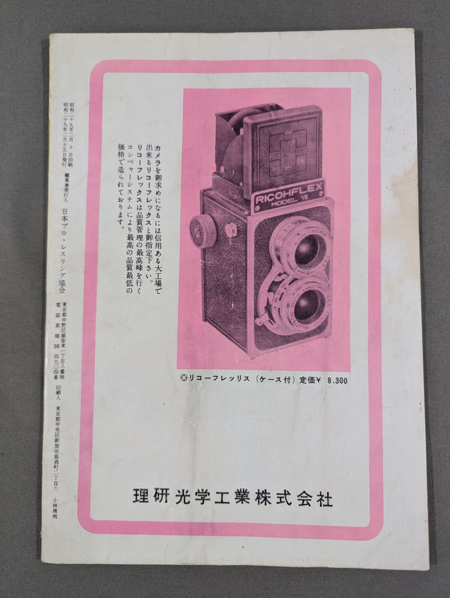 1954年 1954年2月、シャープ兄弟の来日とともにプロレステレビ中継が始まった!!街頭中継にはたくさんの人が集まり熱狂した。日本プロレスの盛り上がりはここから始まったと言っても過言ではないシリーズ!!選手の紹介、プロレスのルール解説、コラムなど掲載