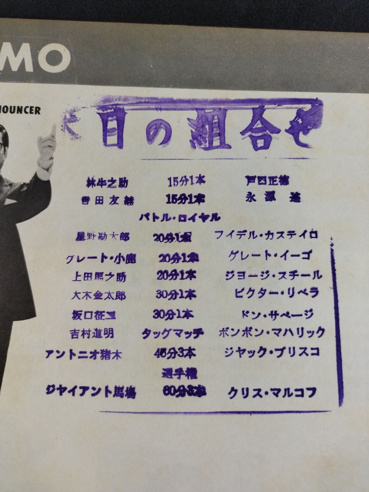 1971年 会場:福岡スポーツセンター / スタンプあり:【インターナショナル選手権試合】ジャイアント馬場vsクリス・マルコフ / アントニオ猪木&吉村道明vsジャック・ブリスコ&ボンボン・マハリック(アート・マハリック)