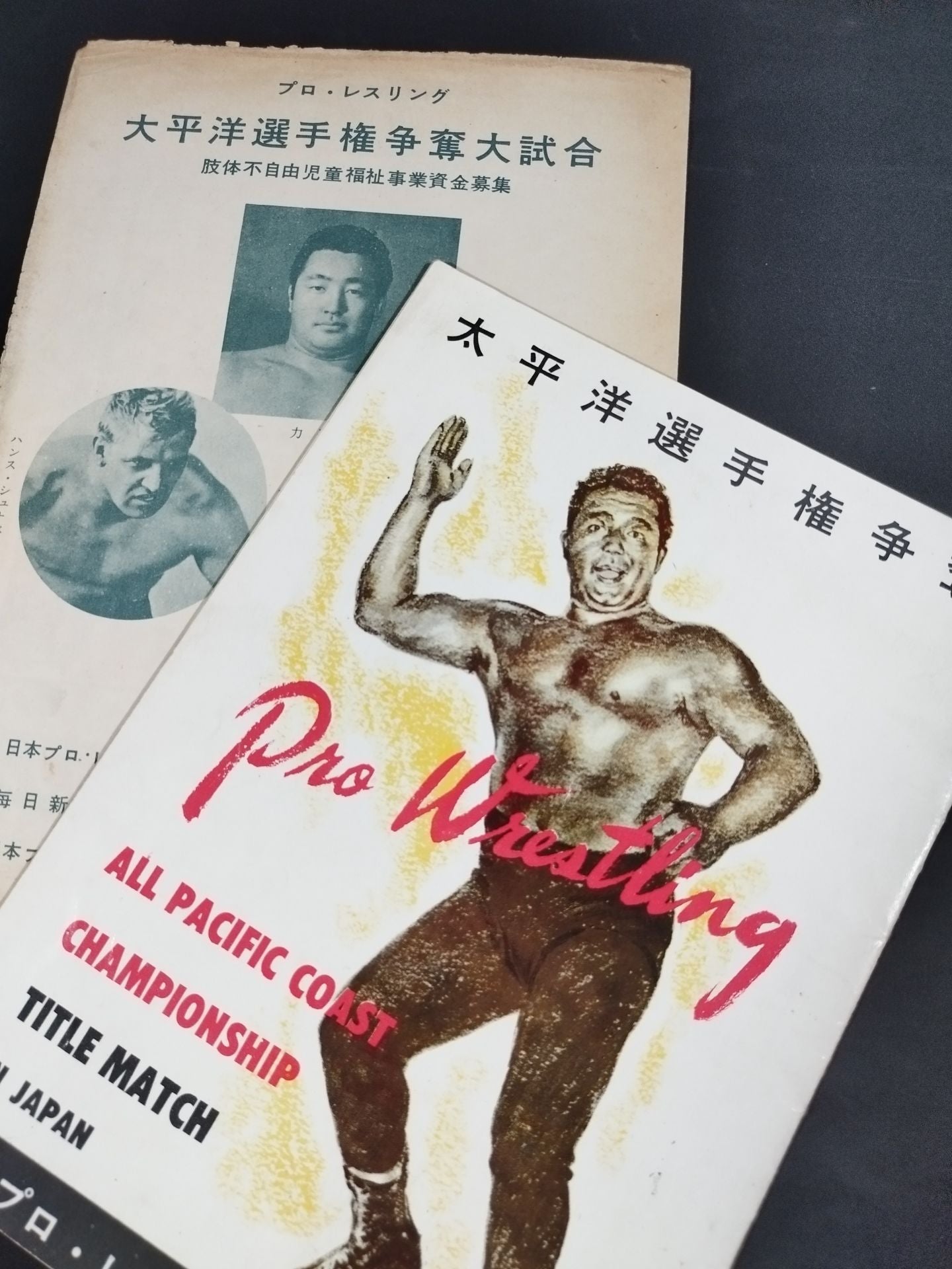 1954年 前シリーズでは、シャープ兄弟との激闘で国民的人気者となった力道山。次なる相手は太平洋タッグ選手権者ニューマン&シュナベル組!会場:東京体育館 / 別紙対戦カード(3大会分記載あり):(8.6)ハンス・シュナベル&ルー・ニューマンvs力道山&駿河海 / (8/7)力道山vsハンス・シュナベル / (8.8)【太平洋岸タッグ(パシフィックコーストタッグ)選手権試合】ハンス・シュナベル&ルー・ニューマンvs力道山&遠藤幸吉