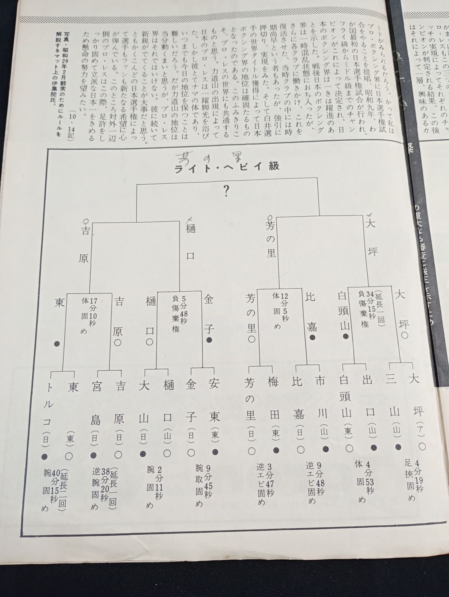 1956年 日本人選手のみ(ユセフ・トルコを除く)で2日に渡り各階級でトーナメント戦が行われた。力道山はチャンピオンとしてトーナメント覇者を迎え撃つため、選手としては不参加。会場:国際スタヂアム / スタンプなし:【日本ライトヘビー級王座決定トーナメント決勝戦】芳の里vs吉原功 スペシャルレフェリー:力道山 /【日本ヘビー級王座挑戦者決定トーナメント決勝戦】東富士vs山口利夫 スペシャルレフェリー:力道山