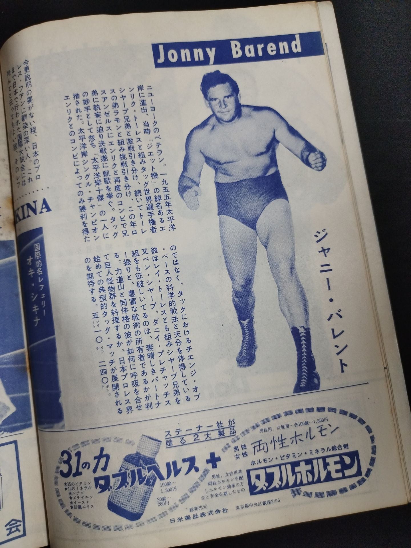1958年 海外組と仲間割れを起こしたジョニー・バレントが日本陣営に付き力道山とタッグを組む!日本側についた外国人レスラー第一号が誕生した歴史的シリーズ!スタンプなし