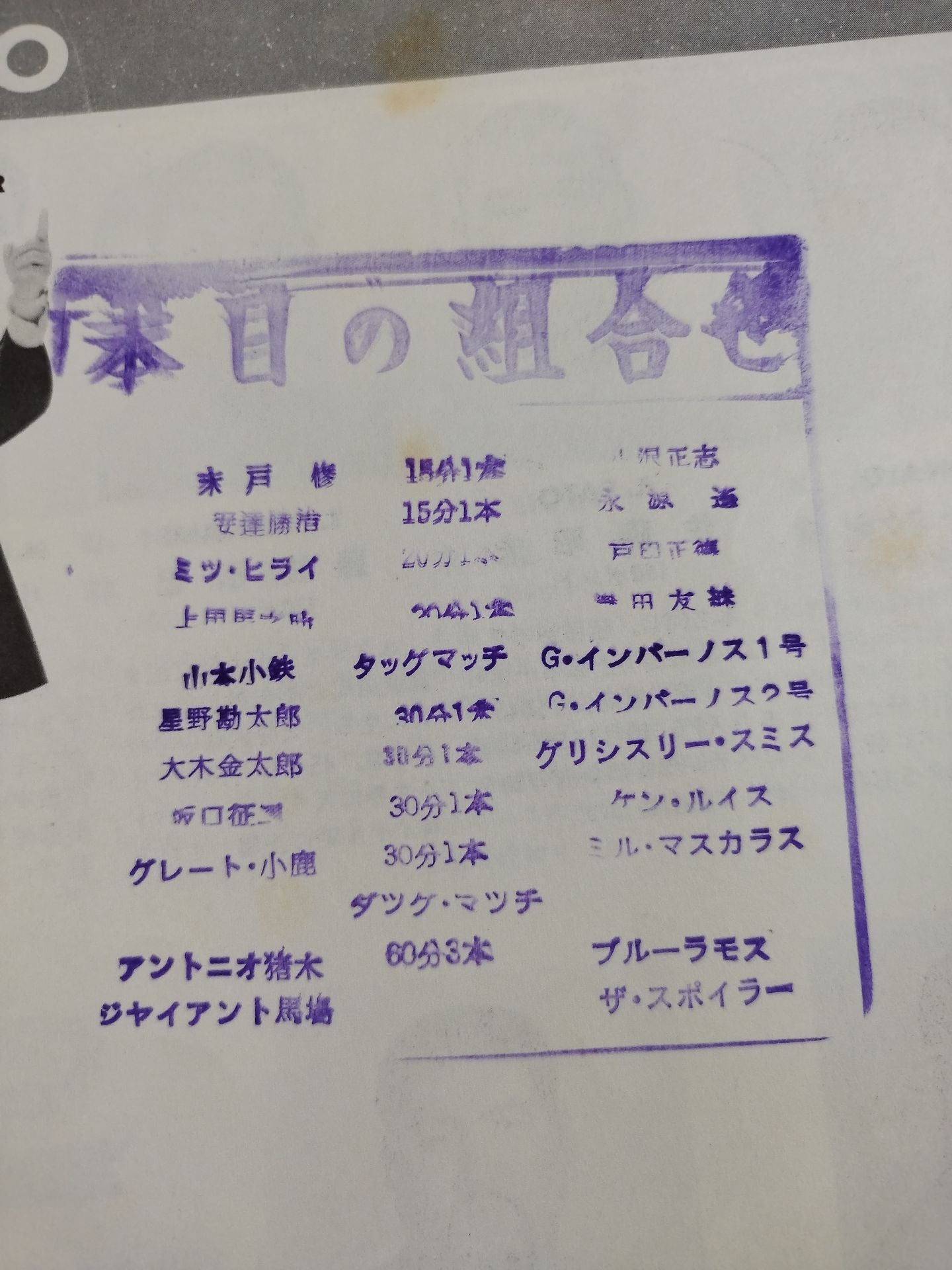 1971年 会場:後楽園ホール / スタンプあり:ジャイアント馬場&アントニオ猪木vsザ・スポイラー&ブル・ラモス / グレート小鹿vsミル・マスカラス