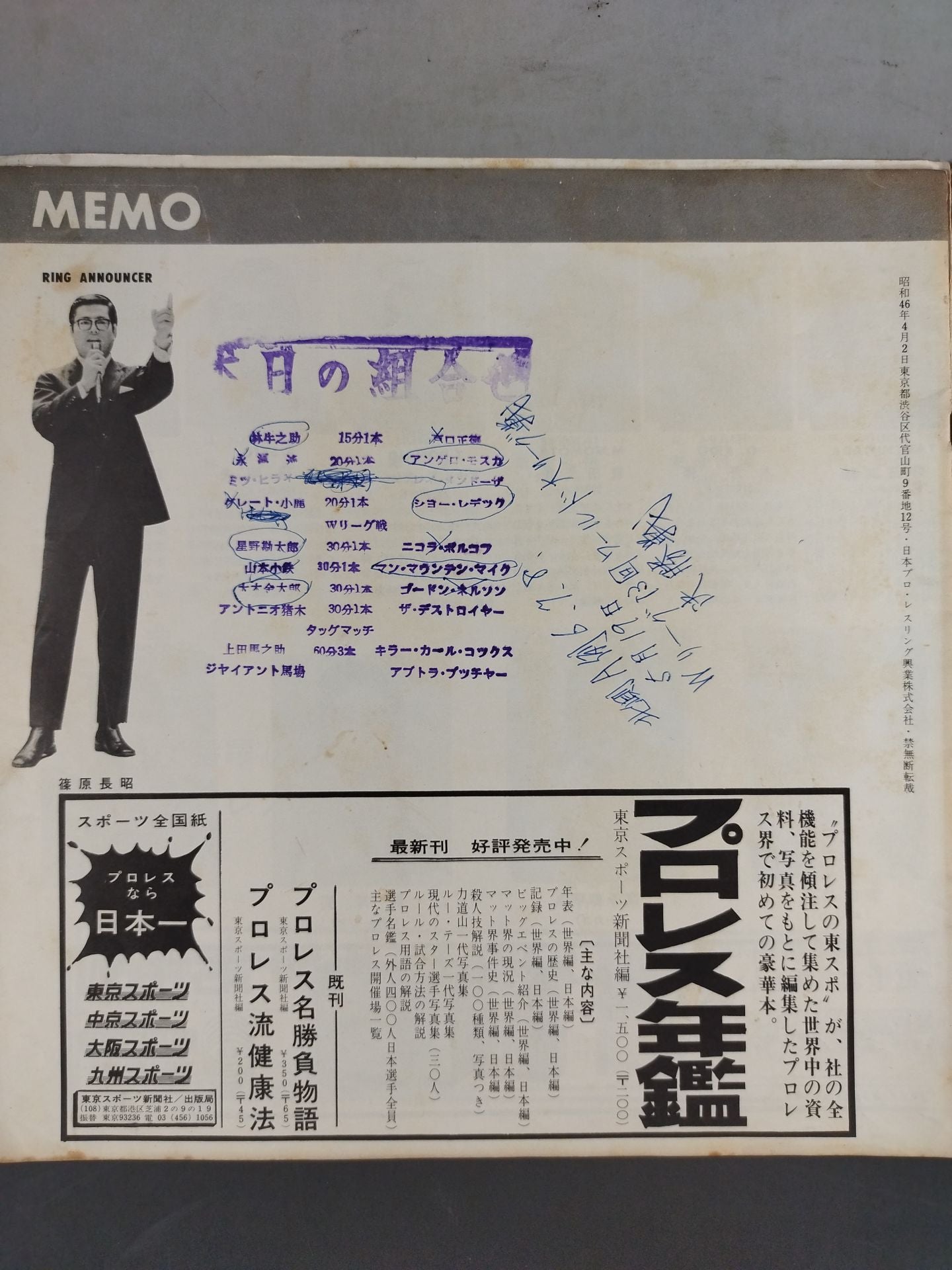 1971年 会場:大阪府立体育館 / スタンプあり:ジャイアント馬場&上田馬之助vsアブドーラ・ザ・ブッチャー&キラー・カール・コックス / アントニオ猪木vsザ・デストロイヤー