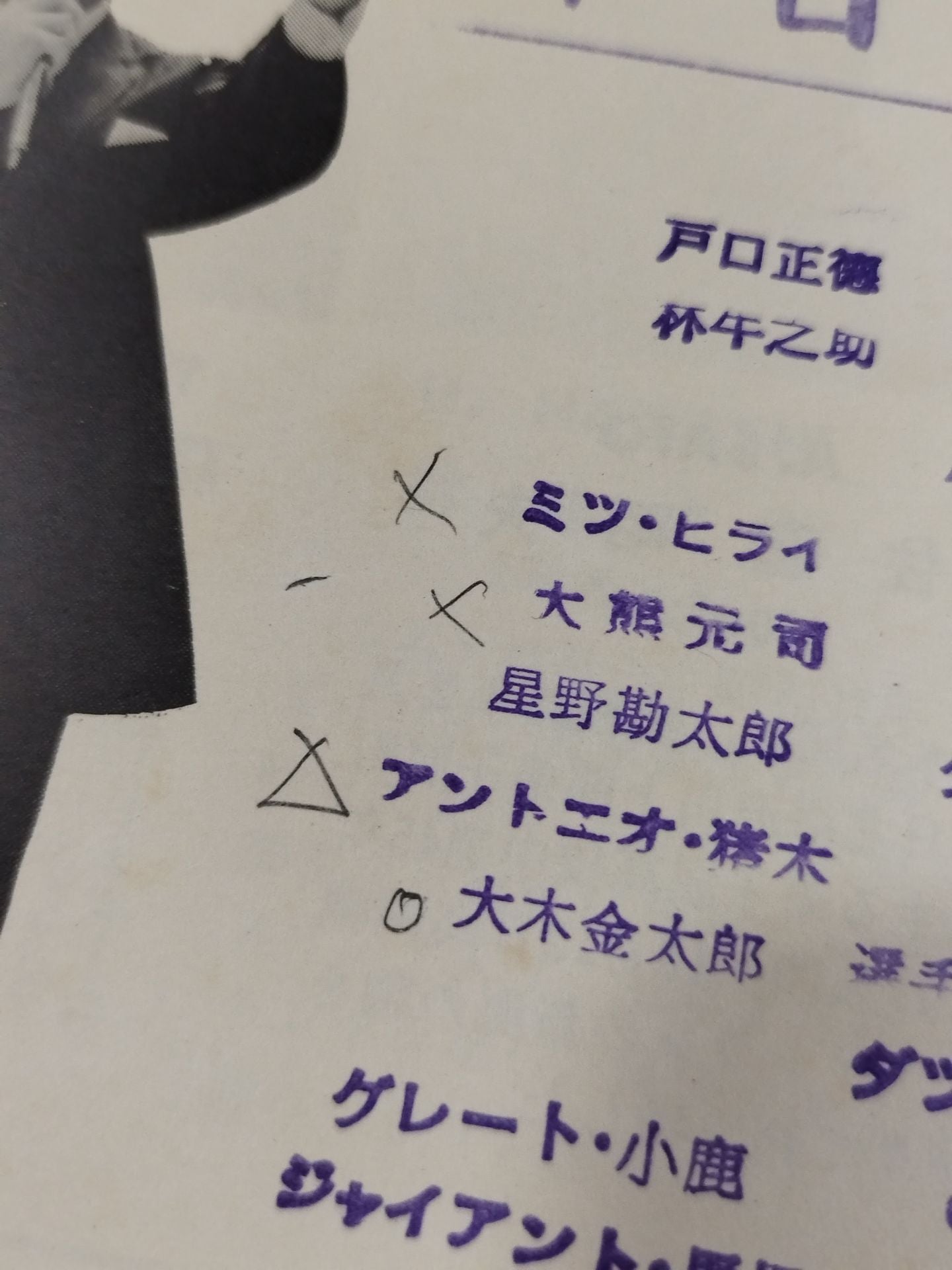 1971年 会場:秋田県立体育館 / スタンプあり:ジャイアント馬場&グレート小鹿VSスパイロス・アリオン&ボビー・デュラントン(ロバート・ドラントンと表記) /【アジアヘビー級選手権試合】大木金太郎vsアール・メイナード(エール・マイナードと表記) /アントニオ猪木&星野勘太郎vsミル・マスカラス&ボビー・ジェーン