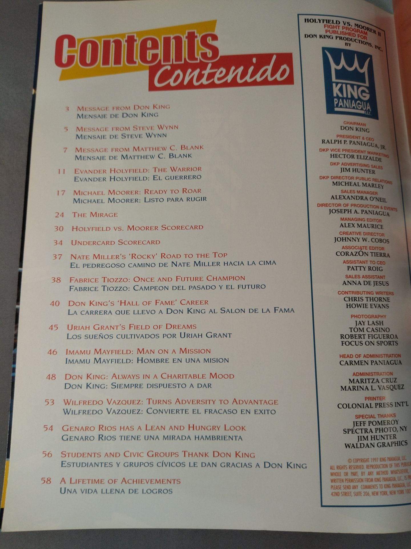 1997年 全編英語表記 / 会場:米・ネバダ州ラスベガス トーマス&マック・センター印刷対戦カード:【WBA・IBF世界ヘビー級王座統一戦】イベンダー・ホリフィールドvsマイケル・モーラー(再戦)
