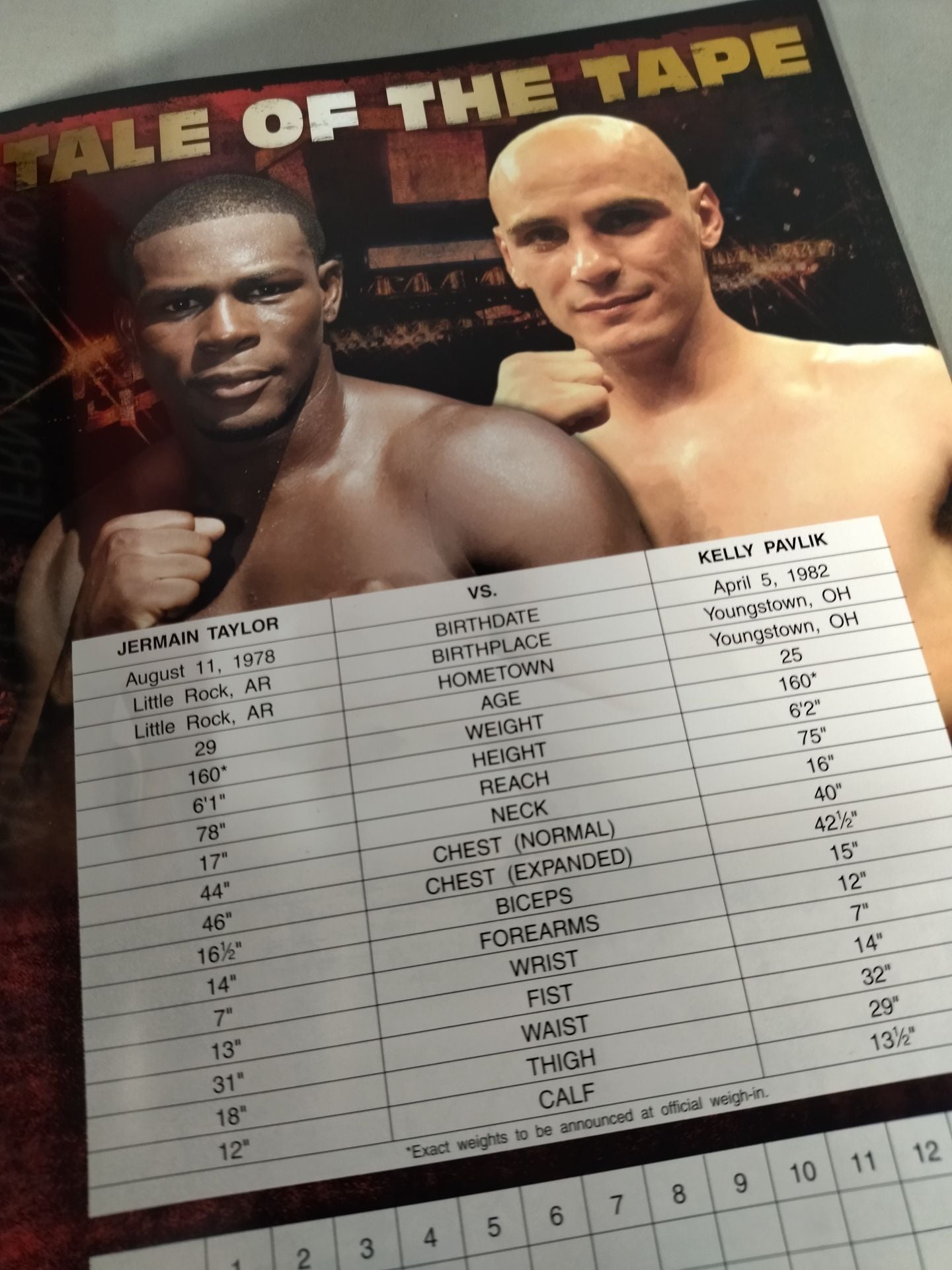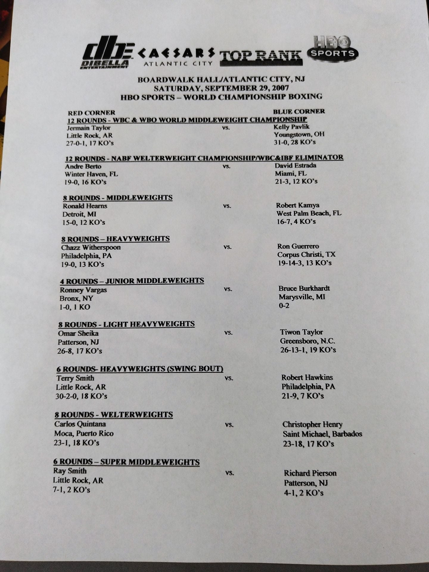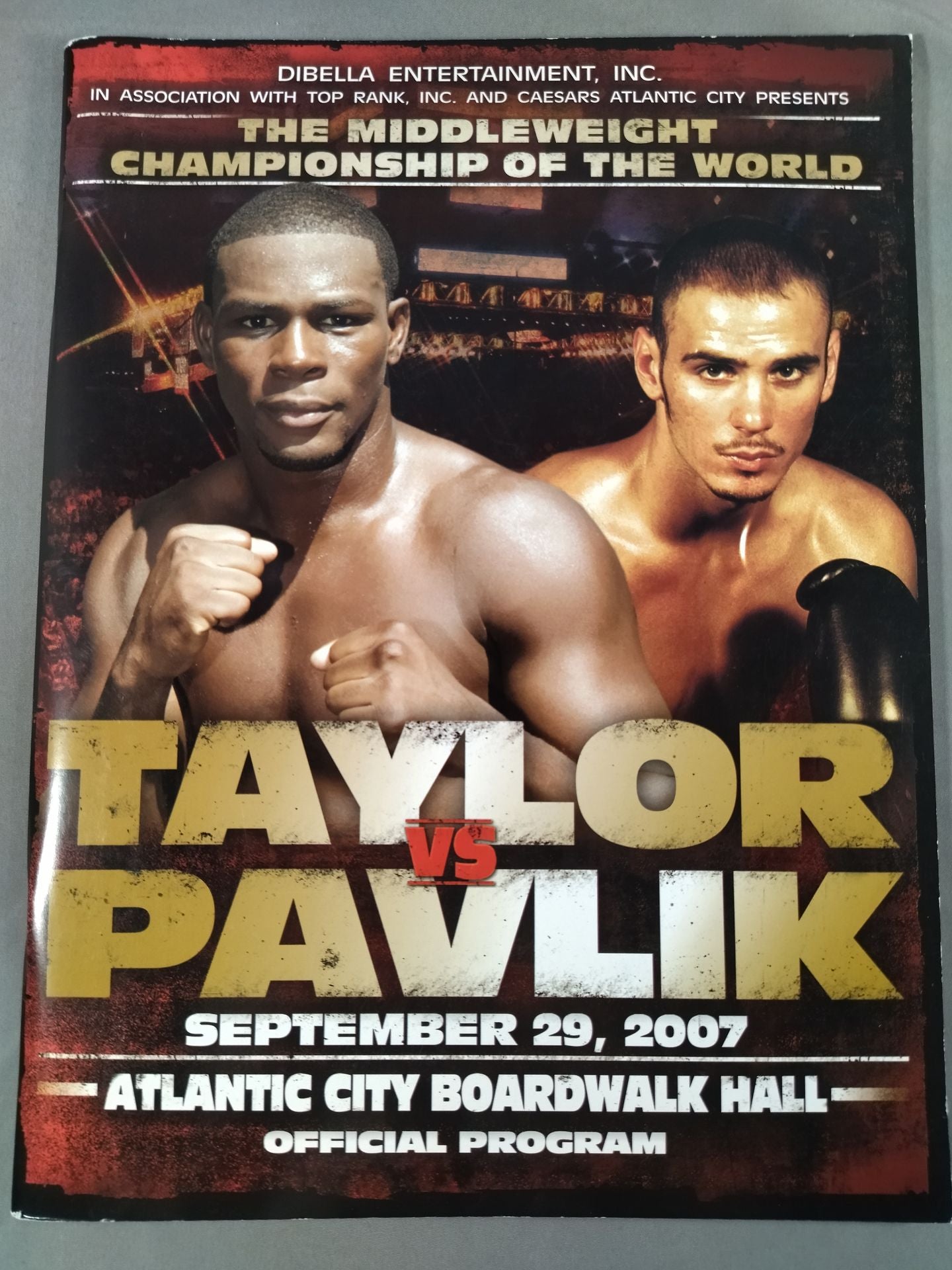 2007年 全編英語表記 / 会場:米・ニュージャージー州 ボードウォーク・ホール(アトランティックシティ・コンベンション・ホール)別紙対戦カードあり:【WBC・WBO世界ミドル級タイトルマッチ】ジャーメイン・テイラーvsケリー・パブリク