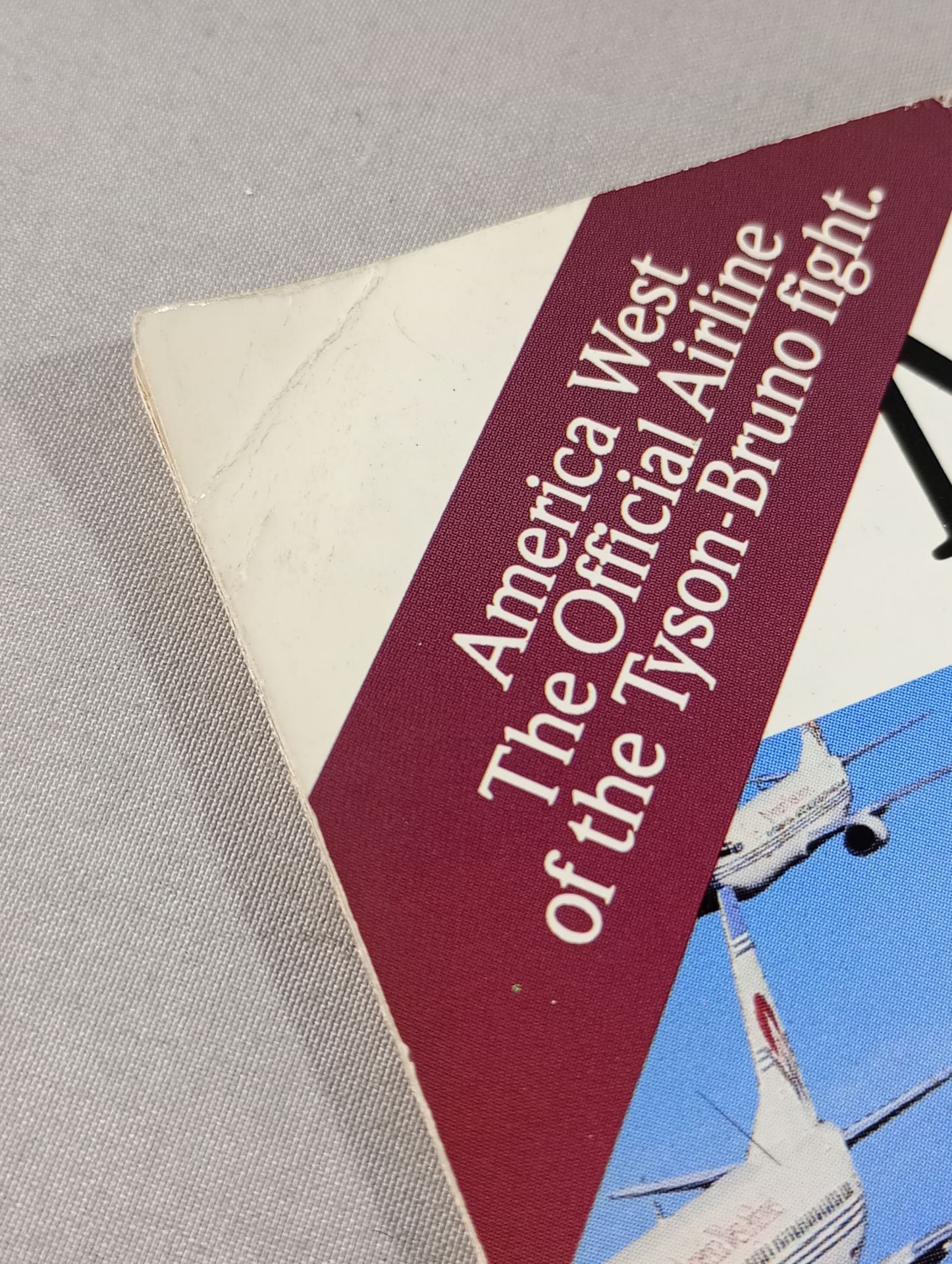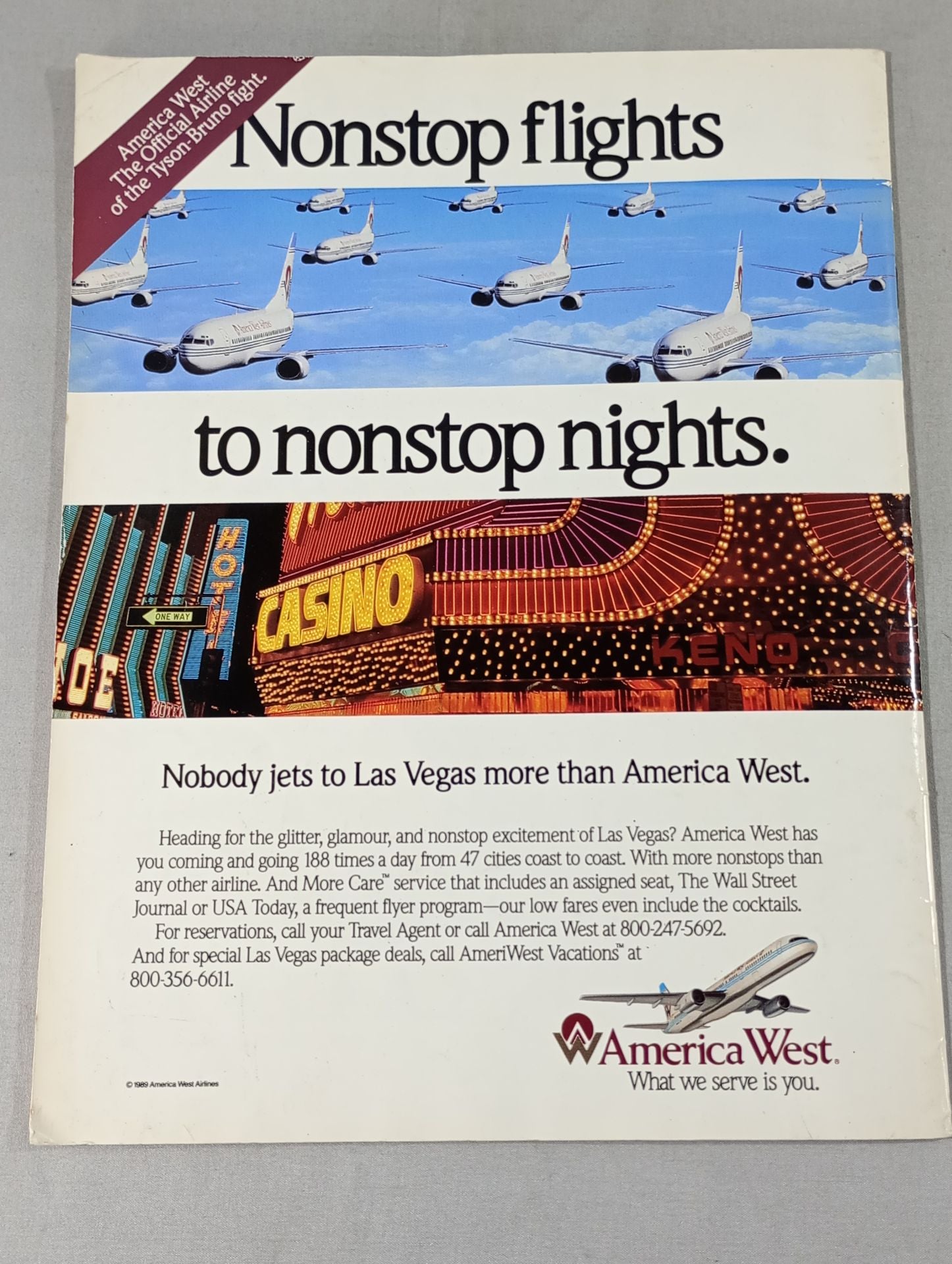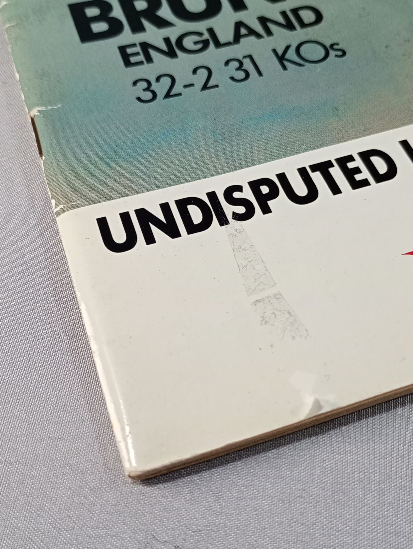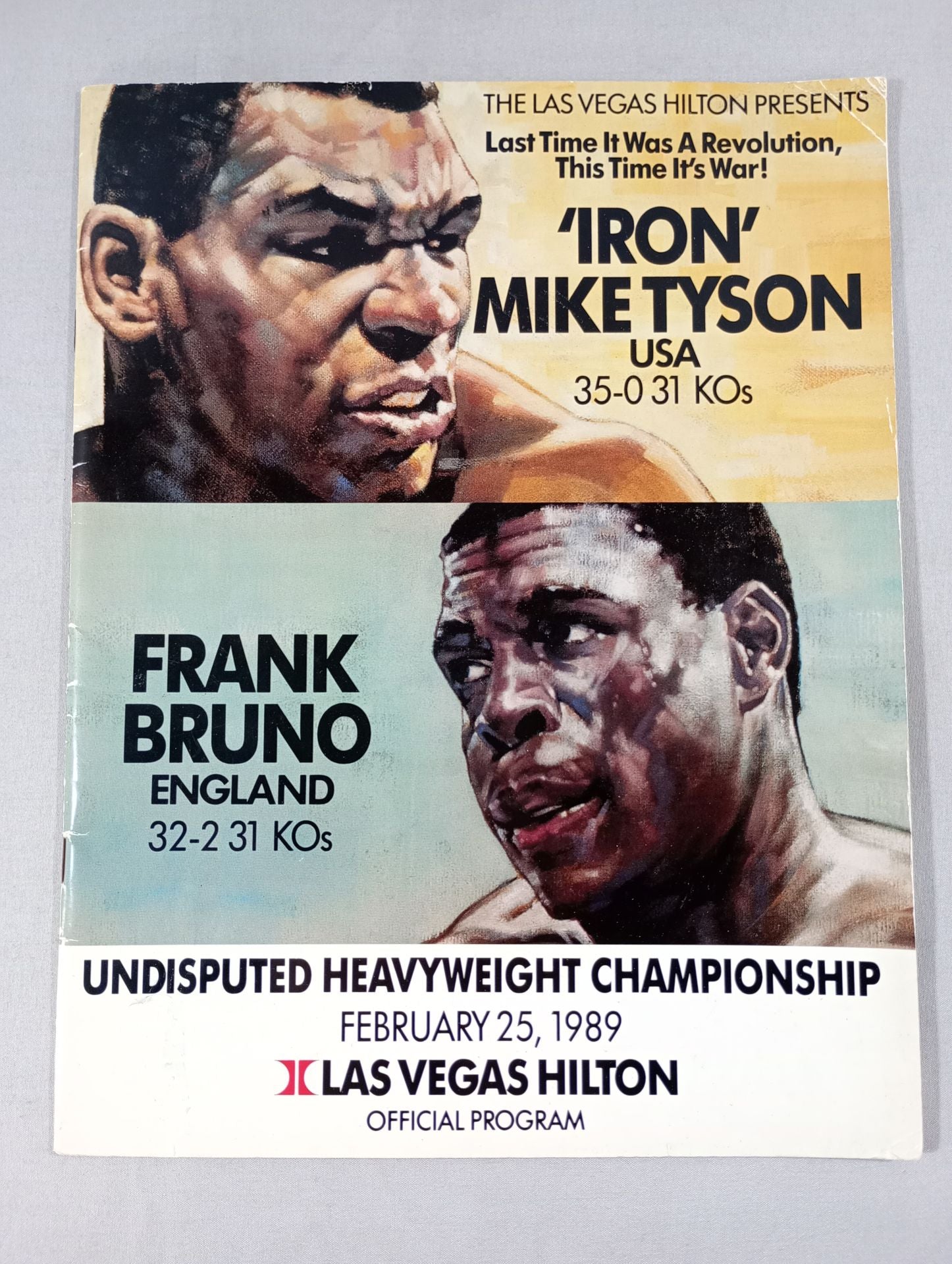 1989年 全編英語表記 / 会場:米・ラスベガス・ヒルトンセンター印刷対戦カード:【WBA・WBC・IBF世界ヘビー級統一戦】マイク・タイソンvsフランク・ブルーノ(初戦) / 【WBC世界スーパーフェザー級タイトルマッチ】アズマー・ネルソンvsマリオ・マルティネス /【WBA世界ライトミドル級(スーパーウェルター級)タイトルマッチ】ジュリアン・ジャクソンvsフランシスコ・デ・ヘスス 第一戦