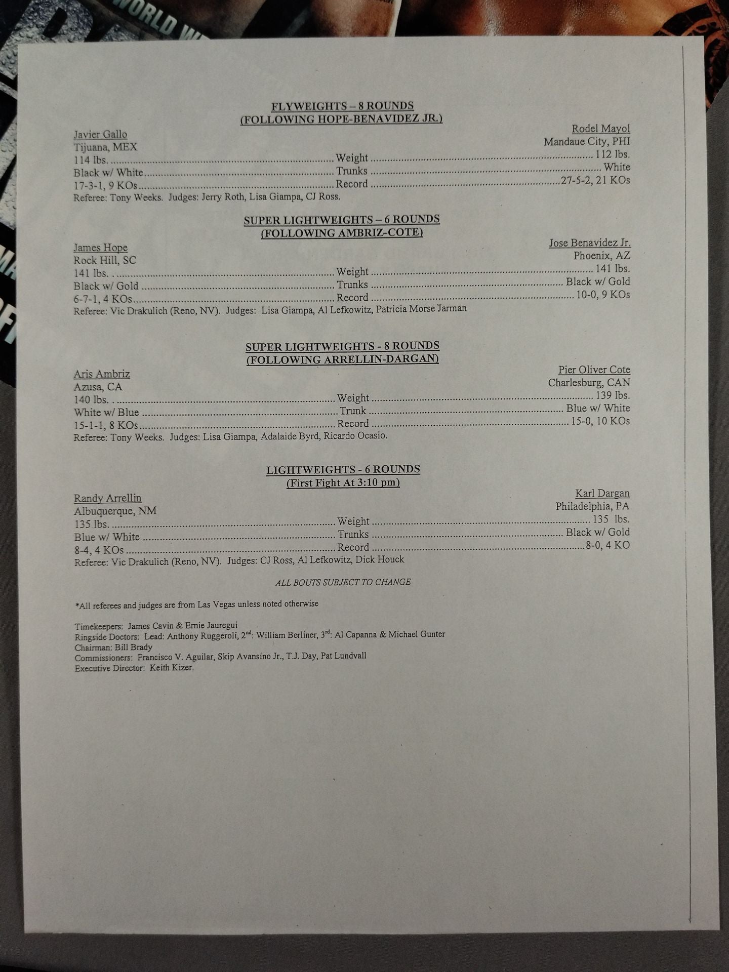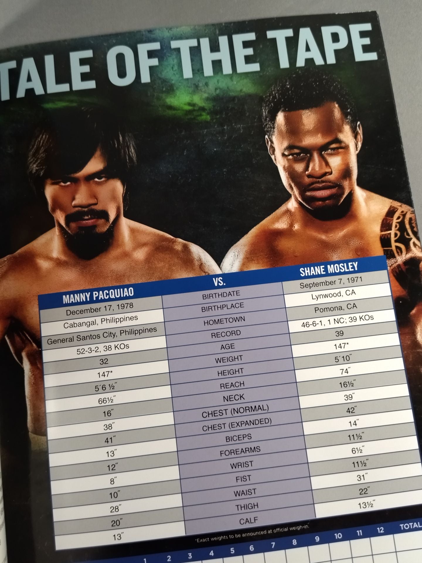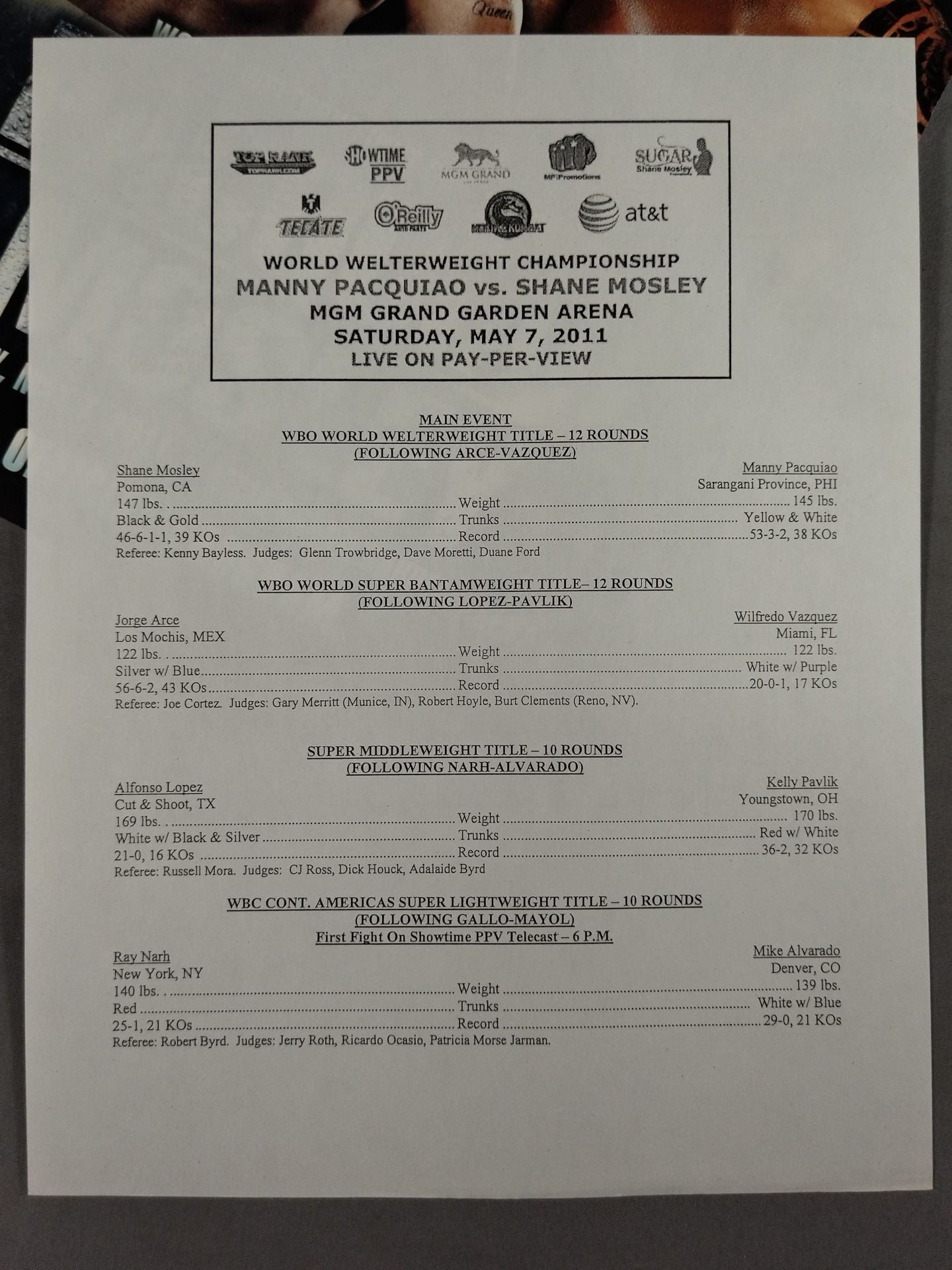 2011年 全編英語表記 / 会場:米・ネバダ州 ラスベガス MGMグランド・ガーデン・アリーナ別紙対戦カードあり:【WBO世界ウェルター級タイトルマッチ】マニー・パッキャオvsシェーン・モズリー