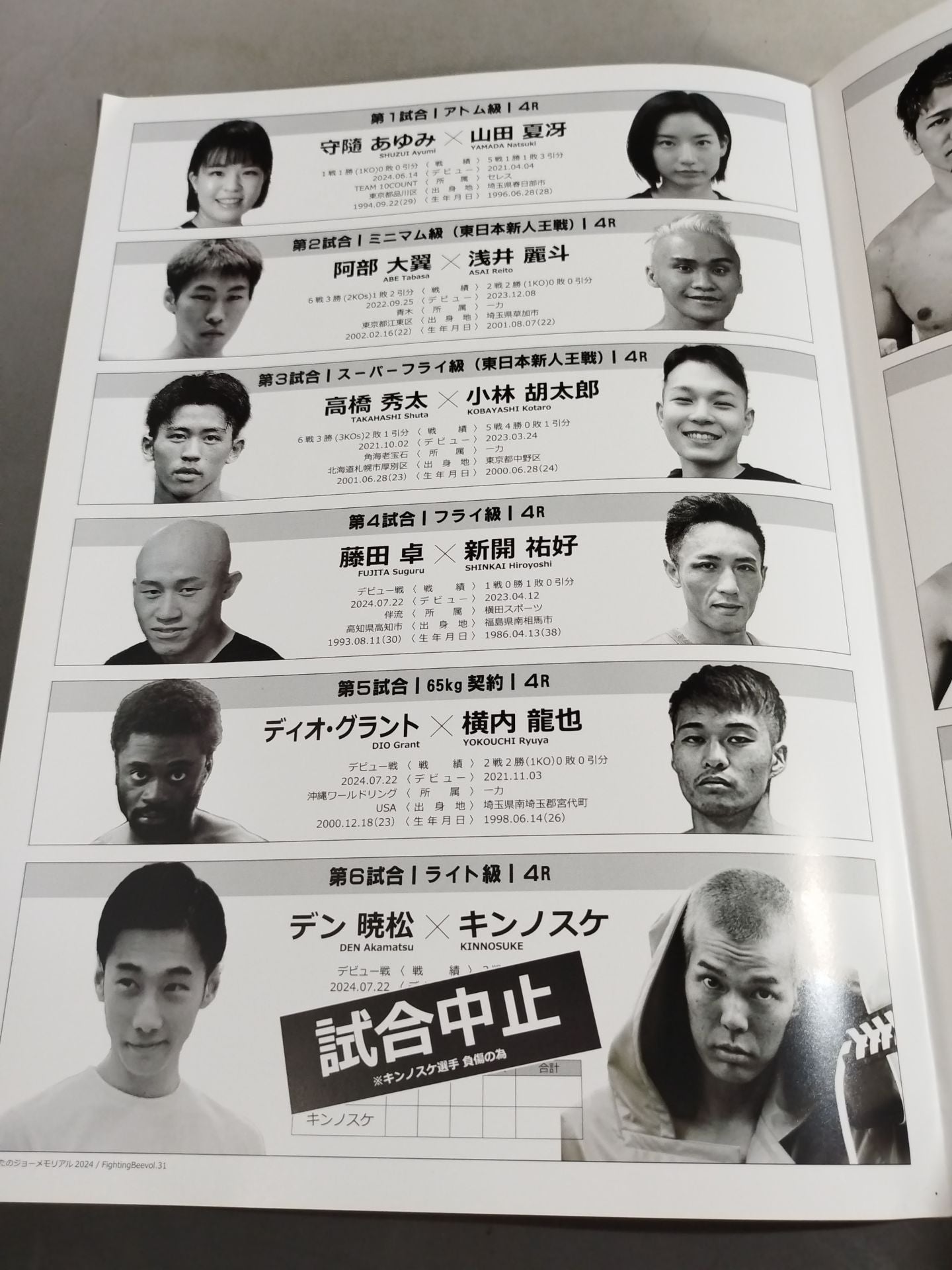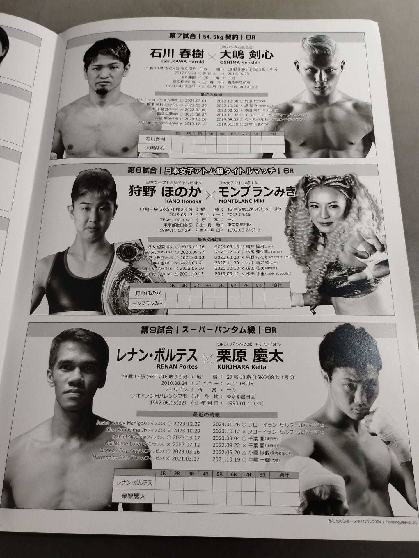 2024年 会場:後楽園ホール / 印刷対戦カード:レナン・ポルテスvs栗原慶大 /【日本女子アトム級タイトルマッチ】狩野ほのかvsモンブランみき