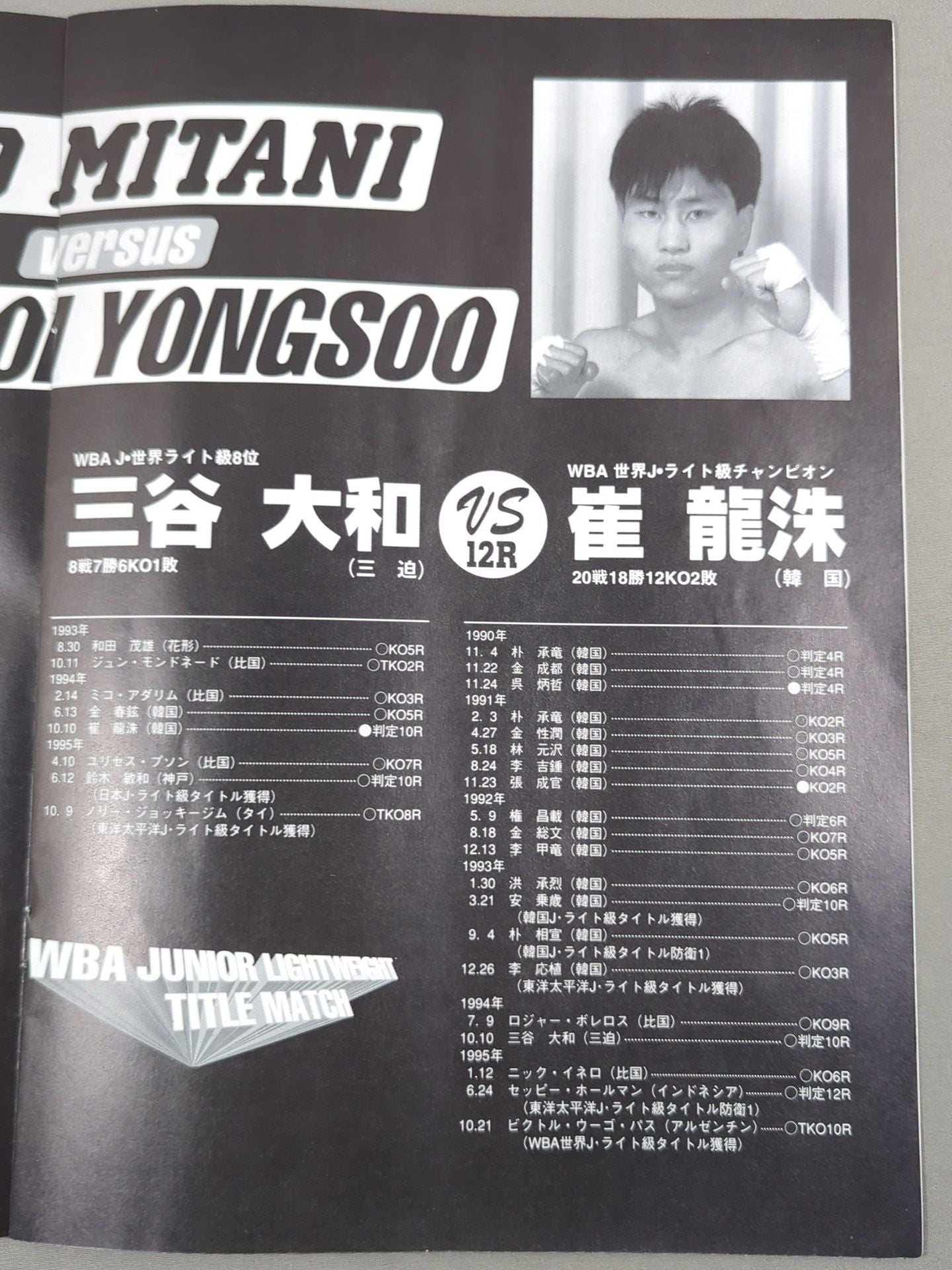 1996年 会場:早稲田記念会堂 / 印刷対戦カード:【WBA世界ジュニアライト級(スーパーフェザー級)タイトルマッチ】三谷大和vs崔龍洙
