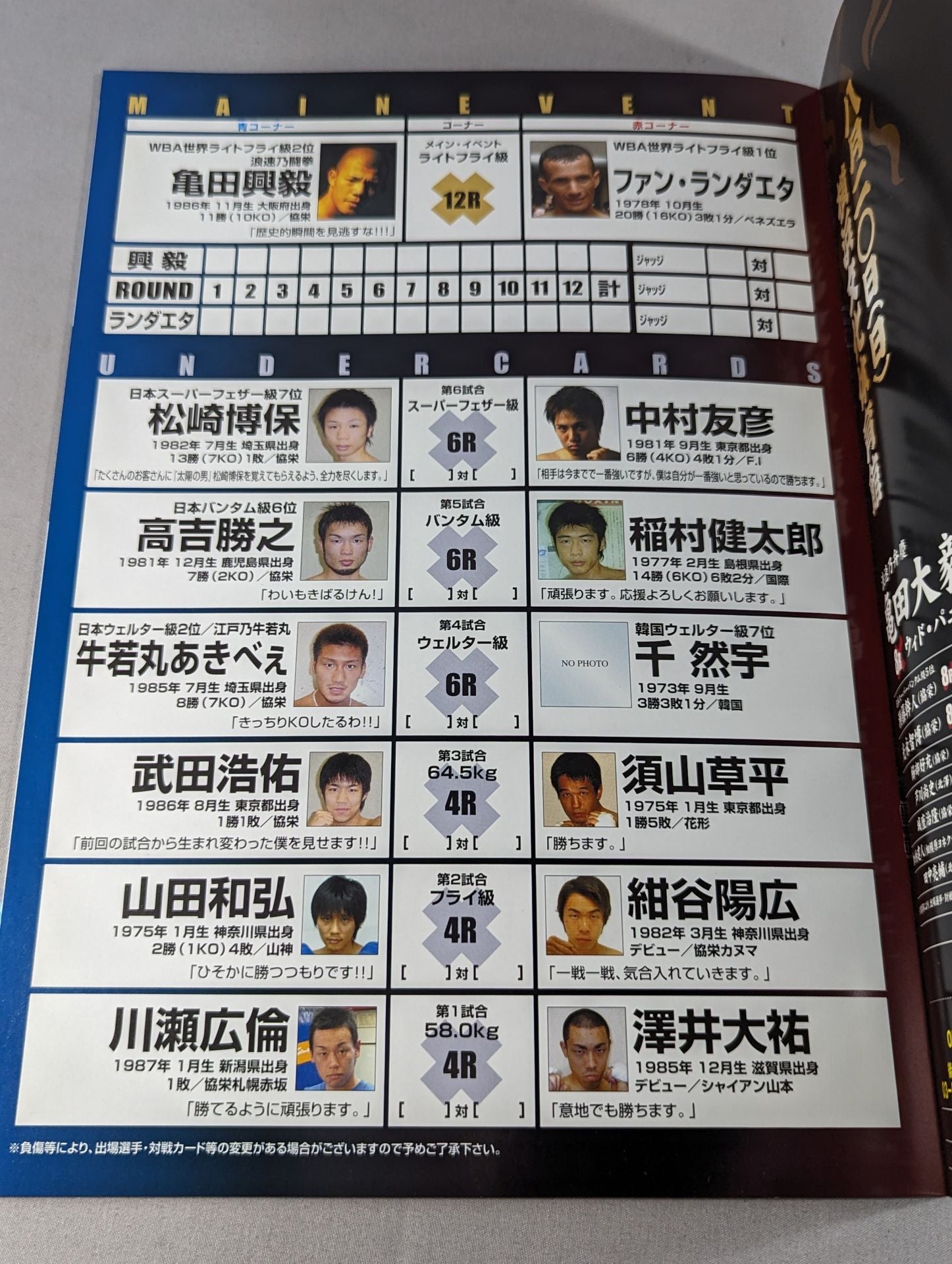 2006年 会場:横浜アリーナ / 印刷対戦カード:【WBA世界ライトフライ級王座決定戦】亀田興毅vsファン・ランダエタ(第1戦) 亀田伝説 夢の始まり[一章]