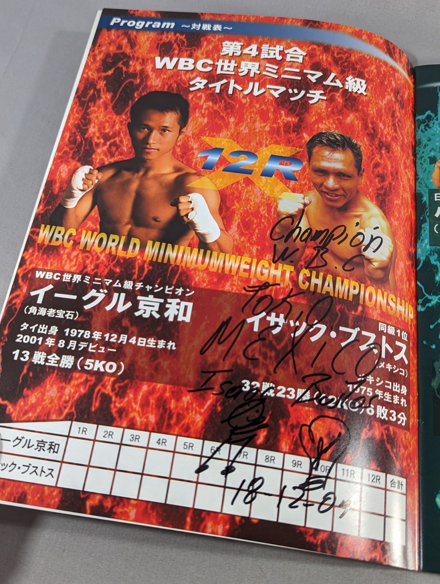 2018年 会場:後楽園ホール / 印刷対戦カード:【WBC世界ミニマム級タイトルマッチ】イーグル京和vsイサック・ブストス