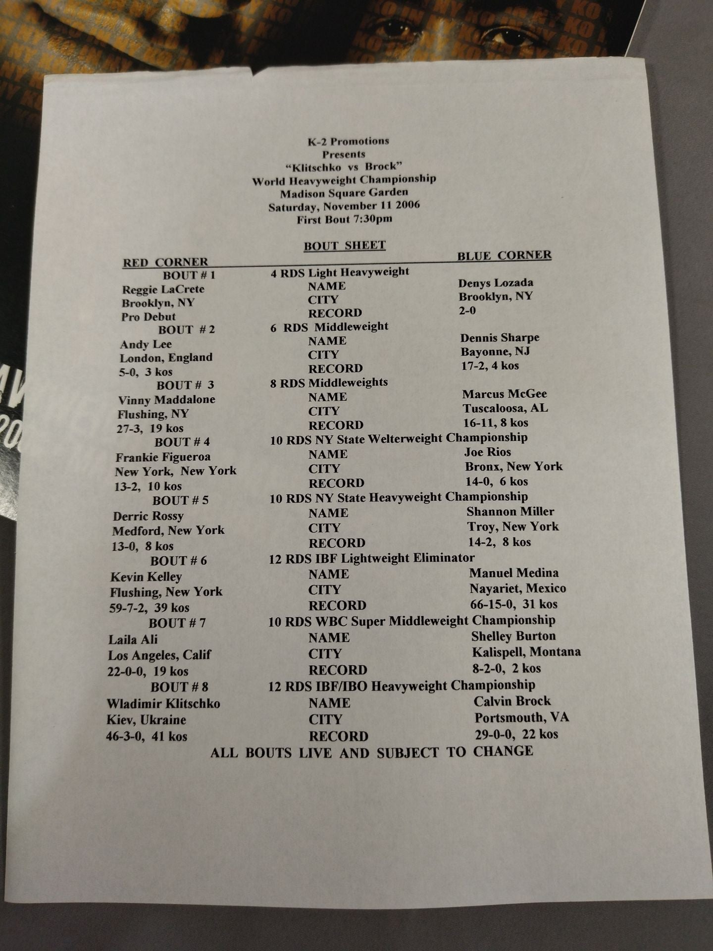 2006年 全編外国語表記 / 会場:米・ニューヨーク州マンハッタン マディソン・スクエア・ガーデン(MSG)別紙対戦カードあり:【IBF世界ヘビー級タイトルマッチ】ウラジミール・クリチコvsカルビン・ブロック