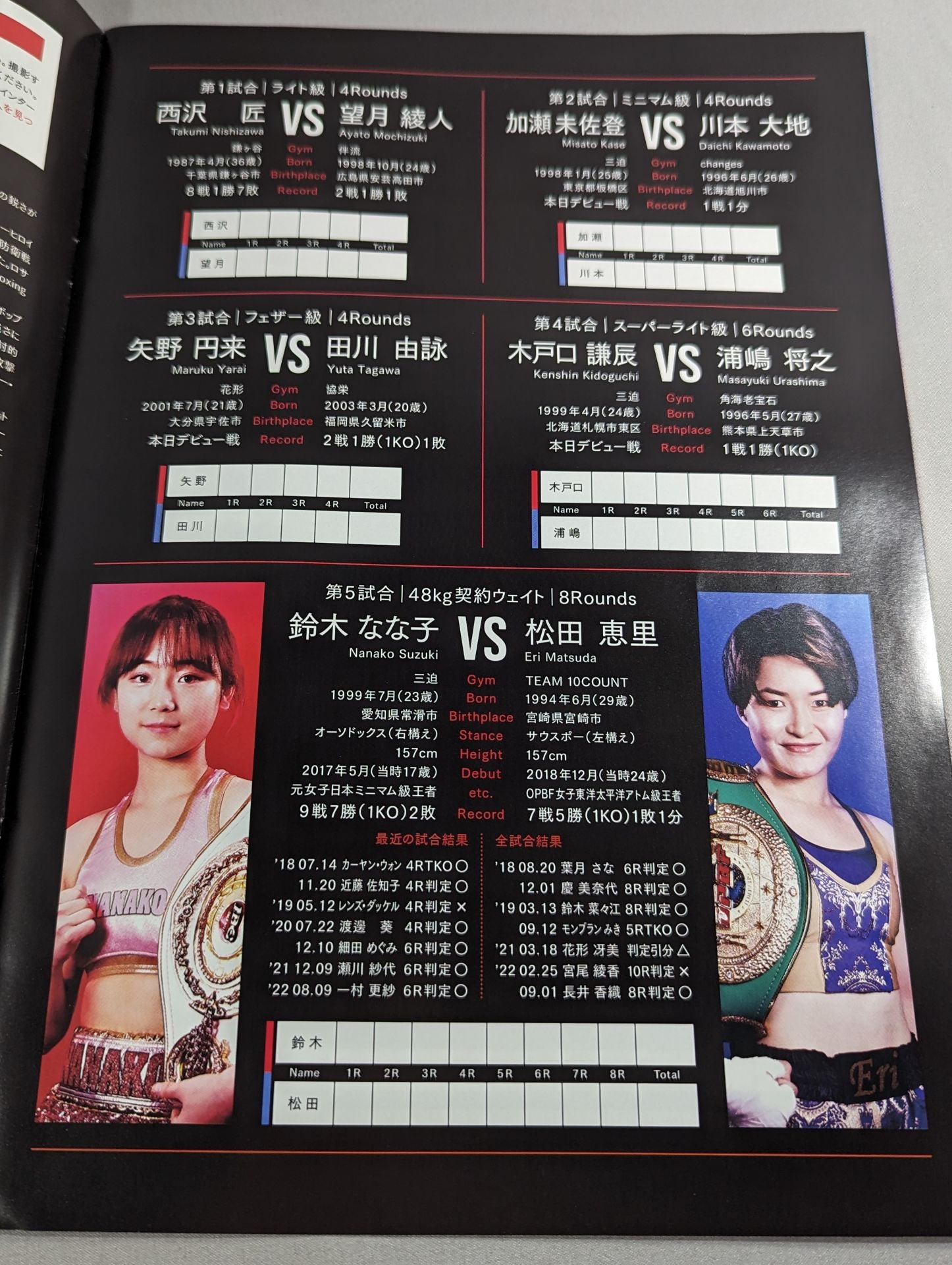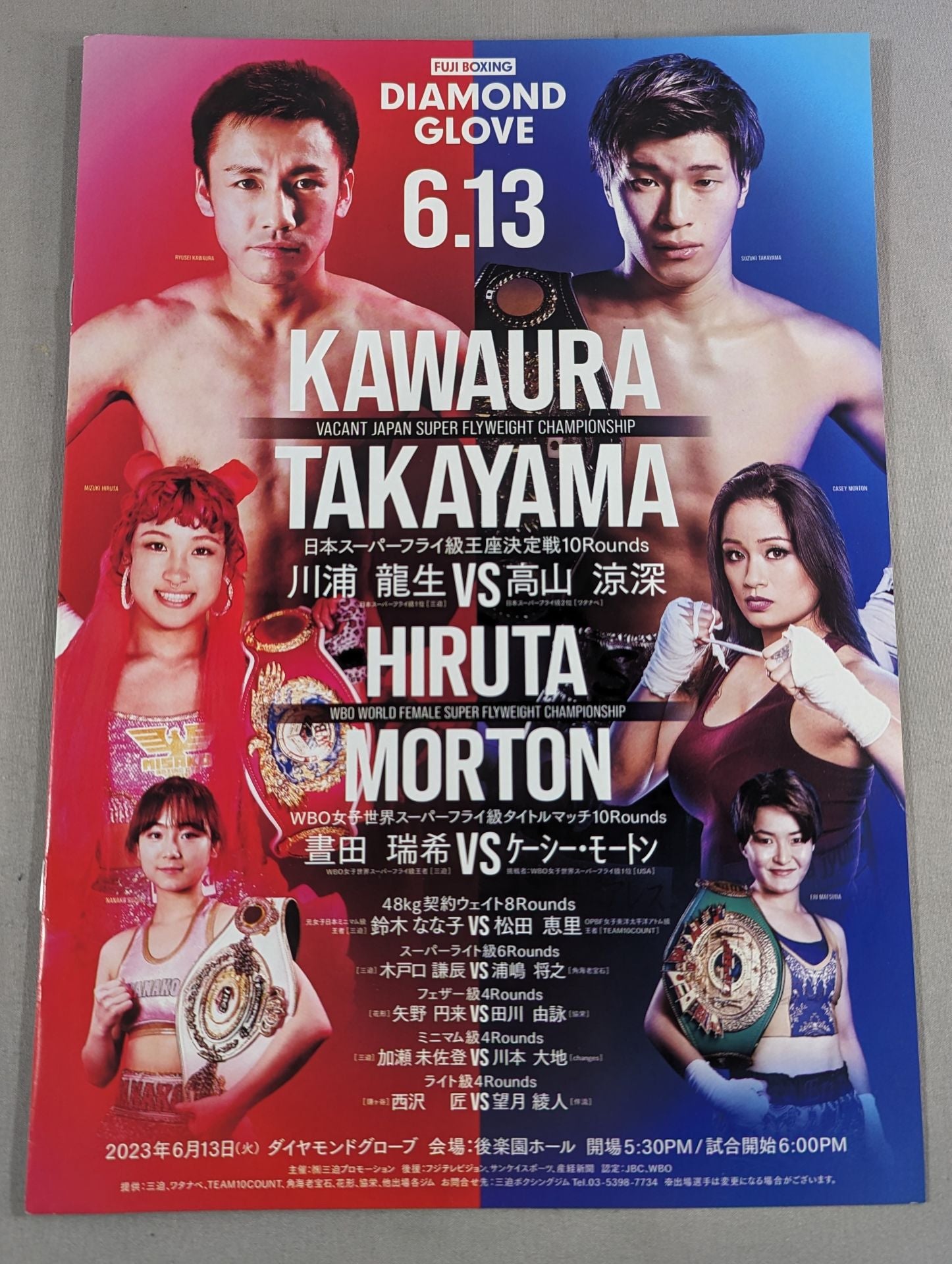 2023年 会場:有明アリーナ / 印刷対戦カード:【日本スーパーフライ級王座決定戦】川浦龍生vs高山涼深 /【WBO女子世界スーパーフライ級タイトルマッチ】晝田瑞希vsケーシー・モートン
