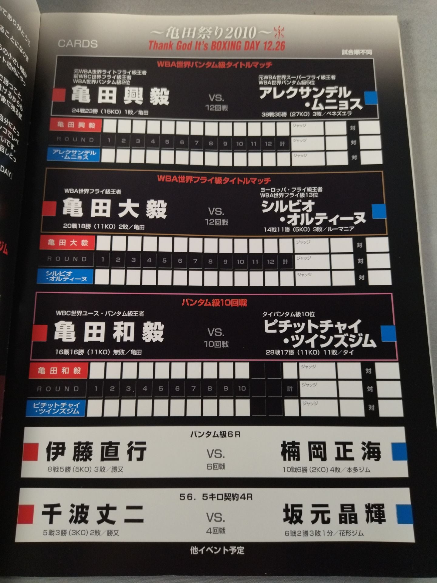 2010年 印刷対戦カード:【WBA世界バンタム級タイトルマッチ】亀田興毅vsアレクサンデル・ムニョス /【WBA世界フライ級タイトルマッチ】亀田大毅vsシルビオ・オルティーヌ /【WBCバンタム級10回戦】亀田和毅vsピチットチャイ・ツインジム / A4サイズ