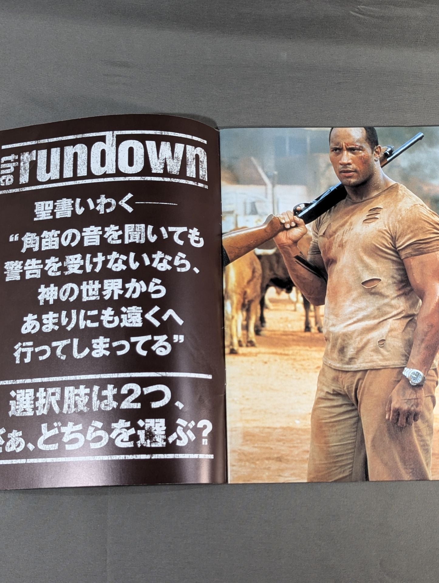 2004年 日本語パンフレット出演:ザ・ロック(ドウェイン・ジョンソン) 他 ※WWEが制作した映画のため、『ドウェイン・ジョンソン』ではなく、『ザ・ロック』名義で出演している。 原題: The Rundown