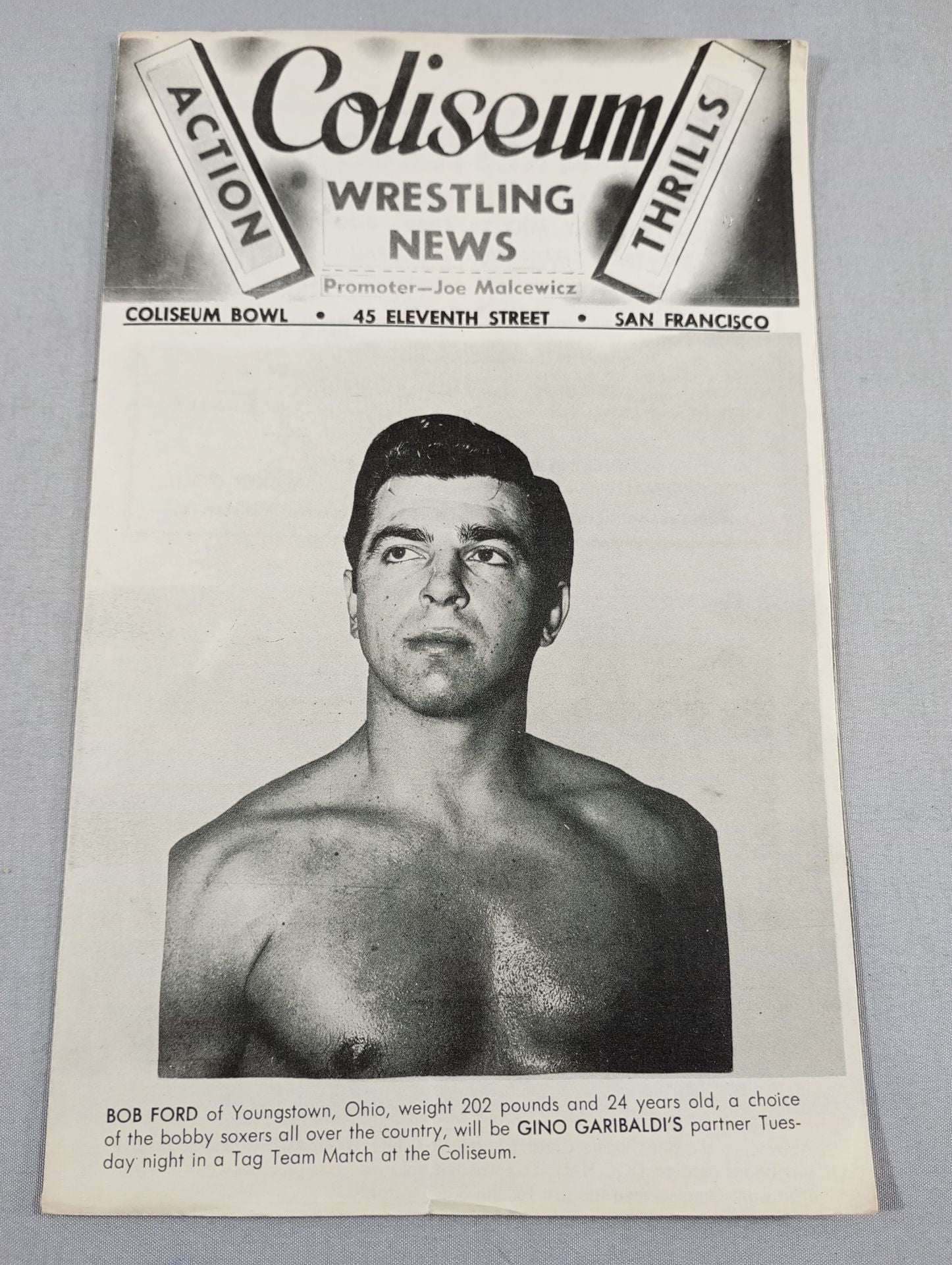 1949年 会場:米 カリフォルニア州サンフランシスコ コロシアム・ボウル / 全編英語表記印刷対戦カード:ジノ・ガリバルディ&ボブ・フォードvsフランク・ジャレス&ファン・ウンベルト West Coast