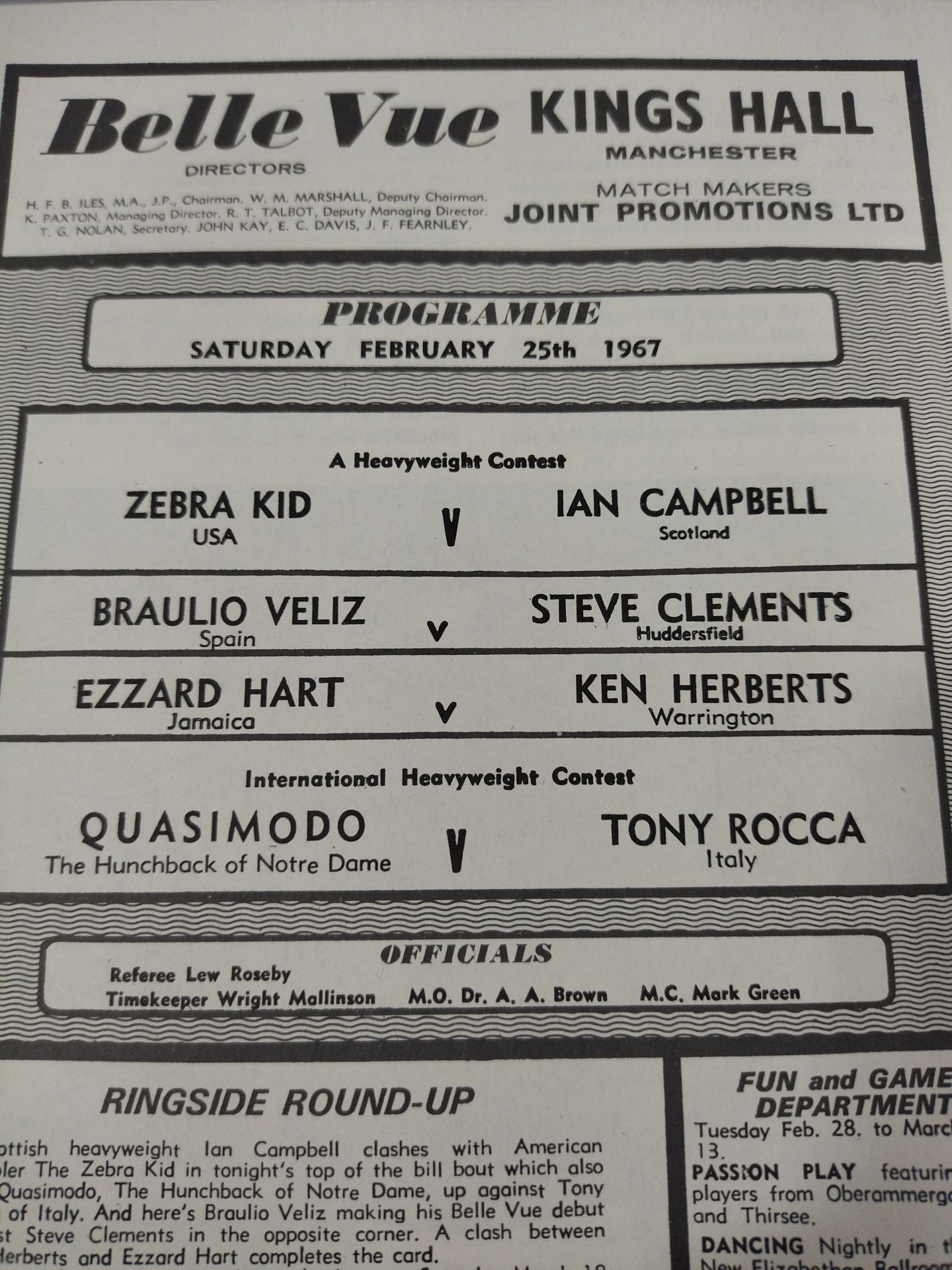 1967年 会場:イギリス マンチェスター キングスホール / 全編英語印刷対戦カード:ゼブラキッドvsイアン・キャンベル mat