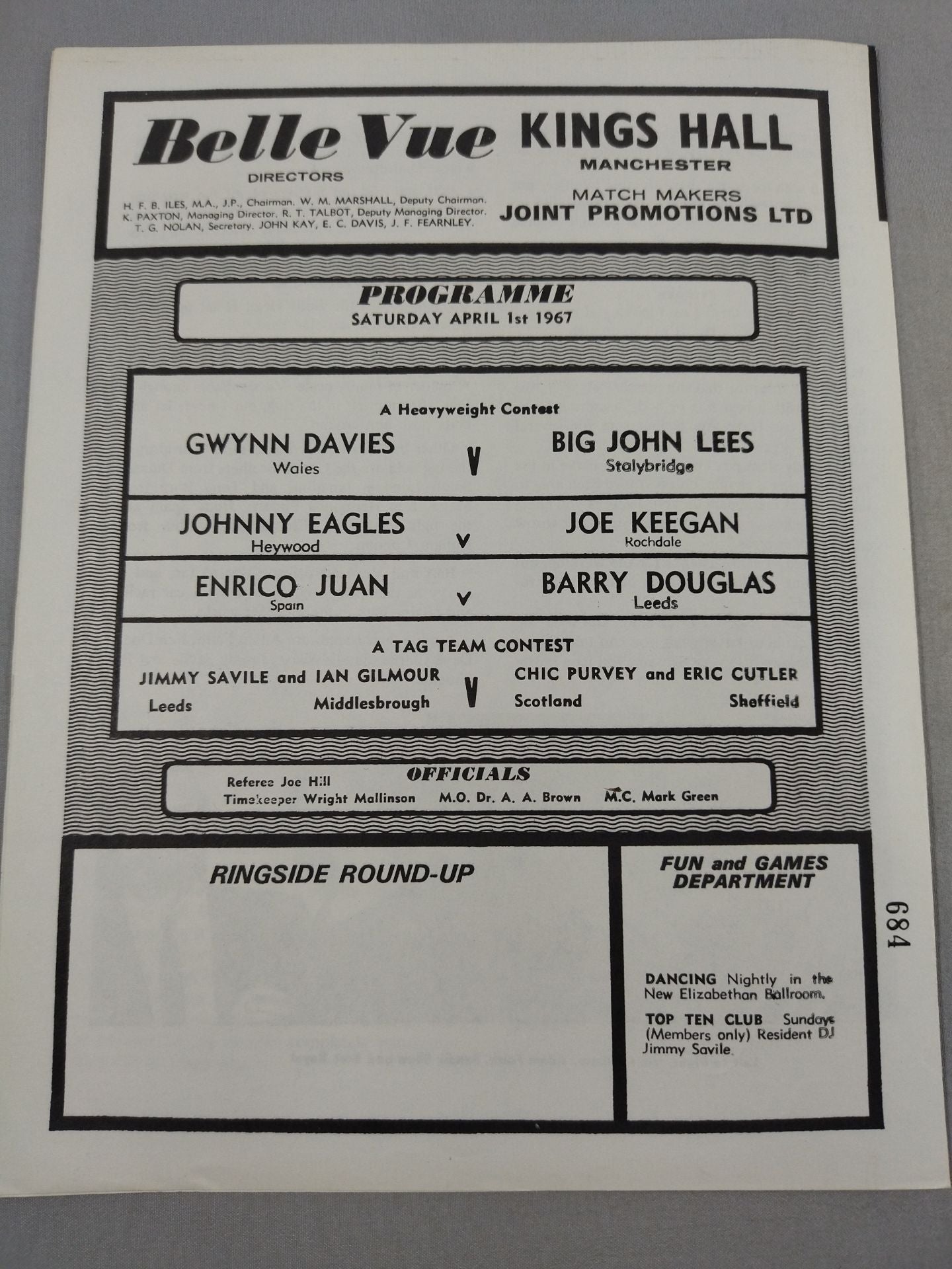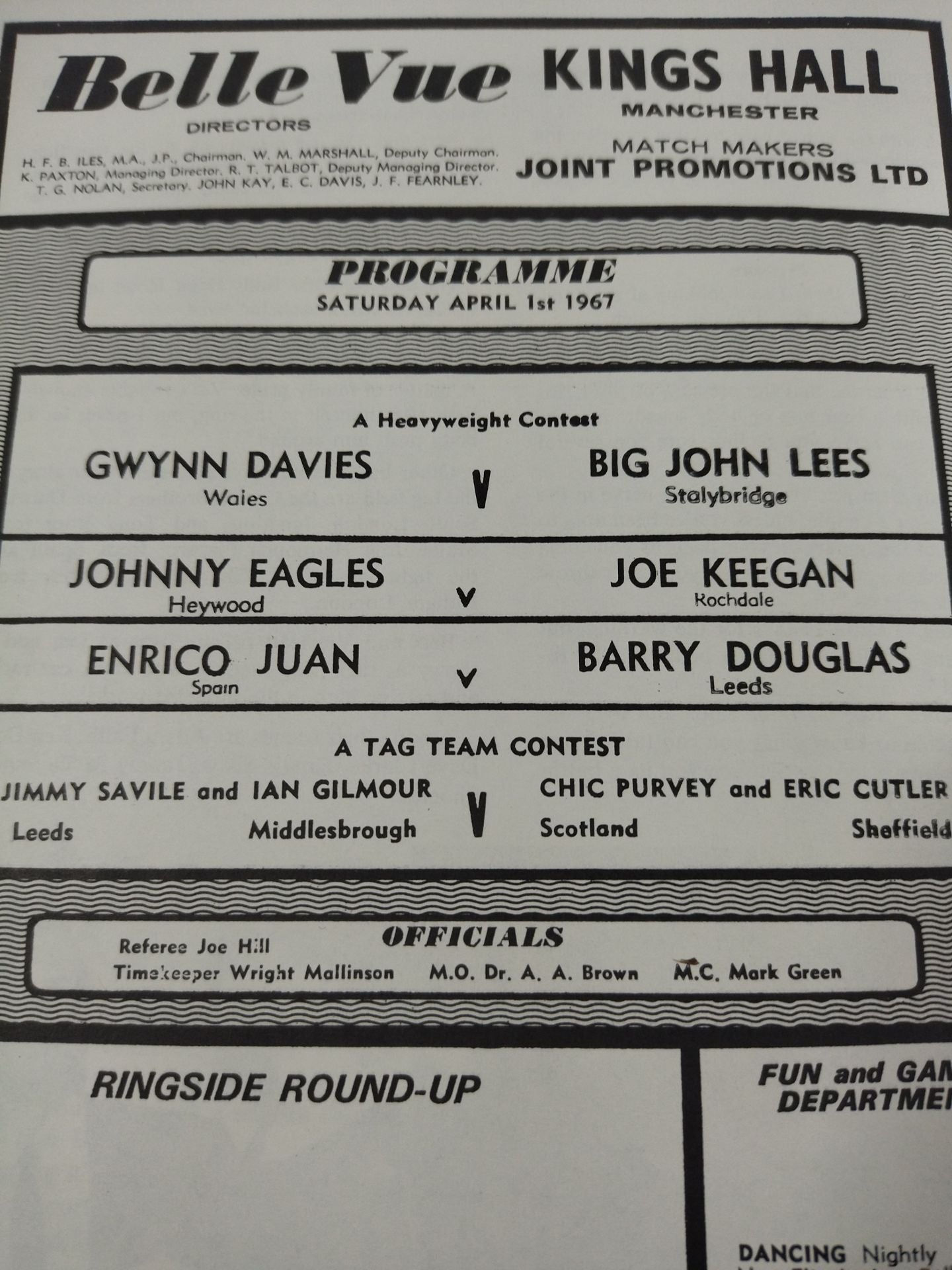1967年 会場:イギリス マンチェスター キングスホール / 全編英語印刷対戦カード:グウィン・デイビスvsビッグ・ジョン・リース mat