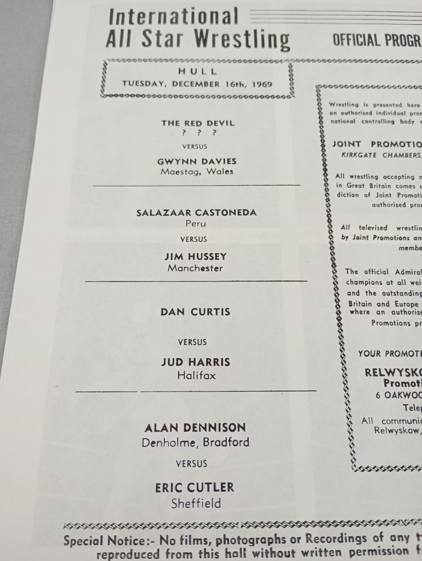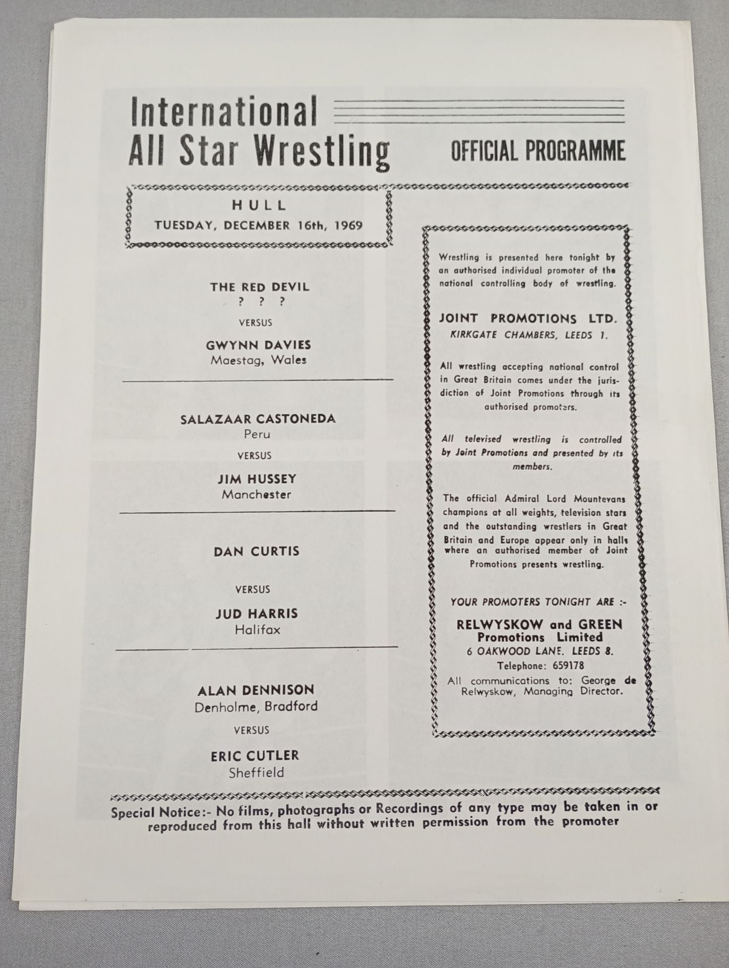 1969年 International ALL Star Wrestling OFFICIAL PROGRAMME / 全編英語印刷対戦カード:ザ・レッド・デビルvsグウェン・デイビス mat
