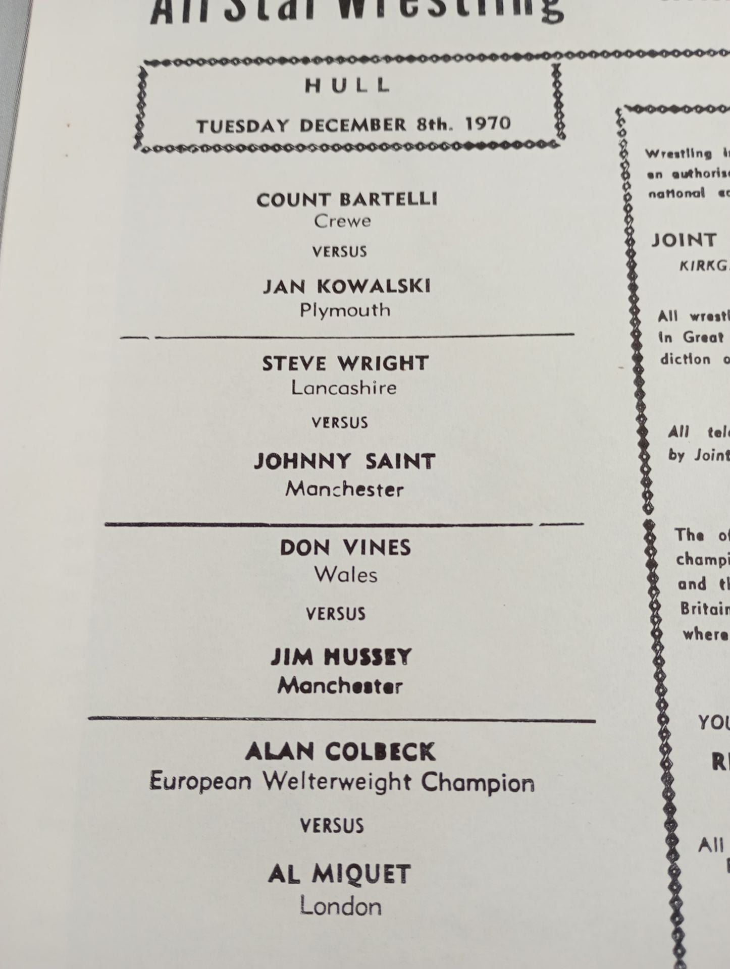 1970年 International ALL Star Wrestling OFFICIAL PROGRAMME / 全編英語表記印刷対戦カード:カウント・バルデッリvsジャン・コワルスキー mat