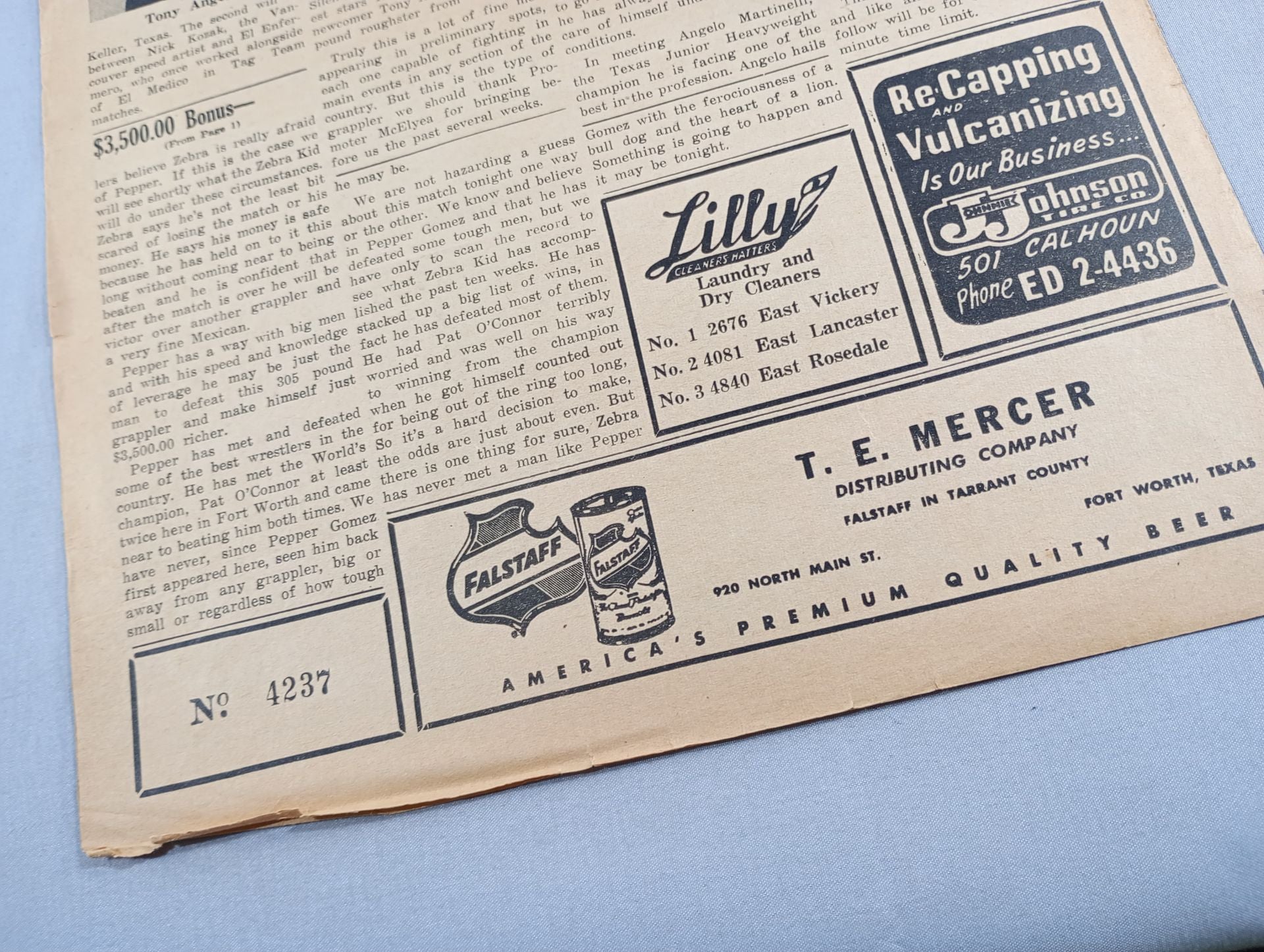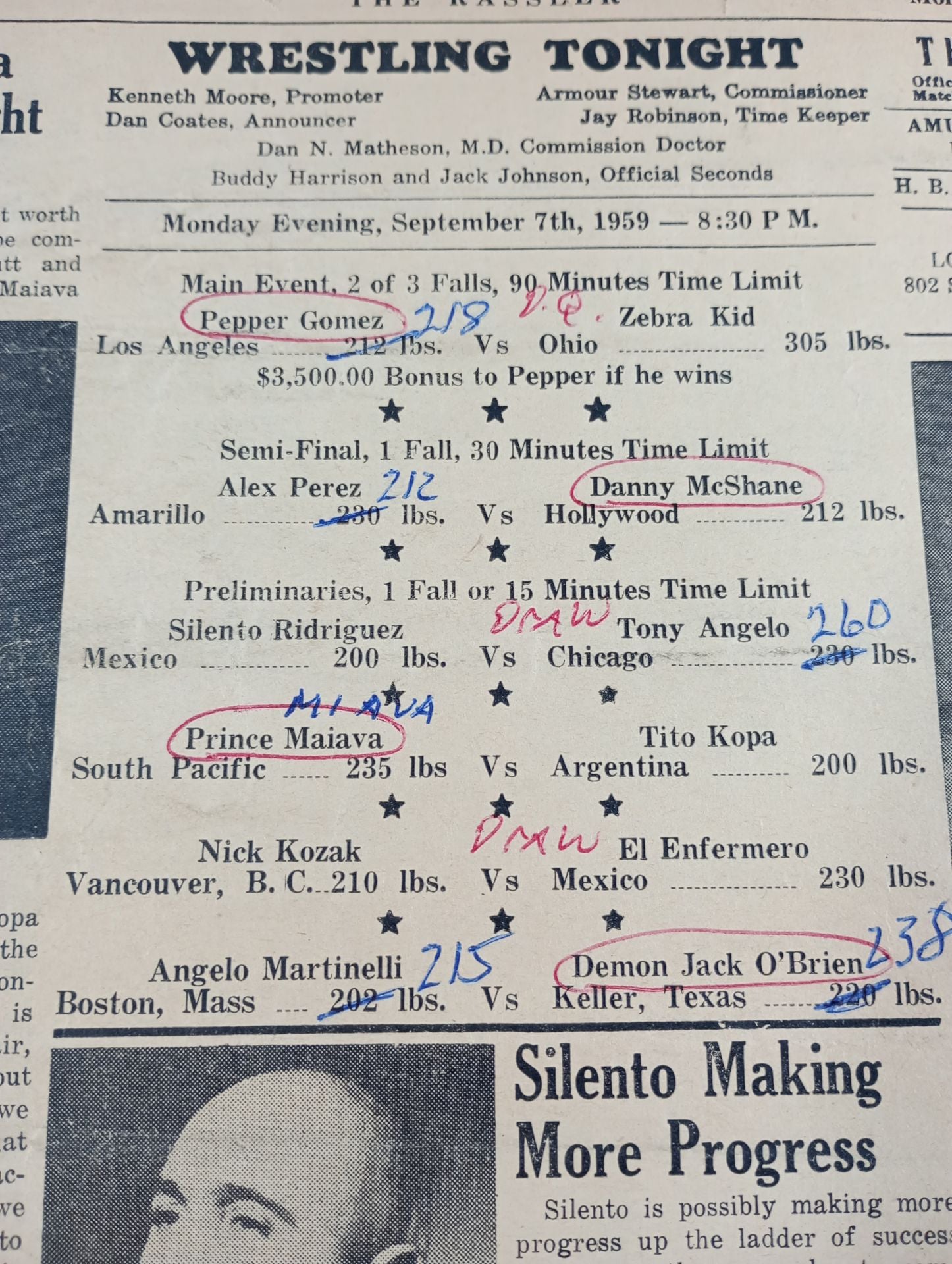 1959年 会場:アメリカ / 全編英語表記印刷対戦カード:ペッパー・ゴメスvsゼブラ・キッド