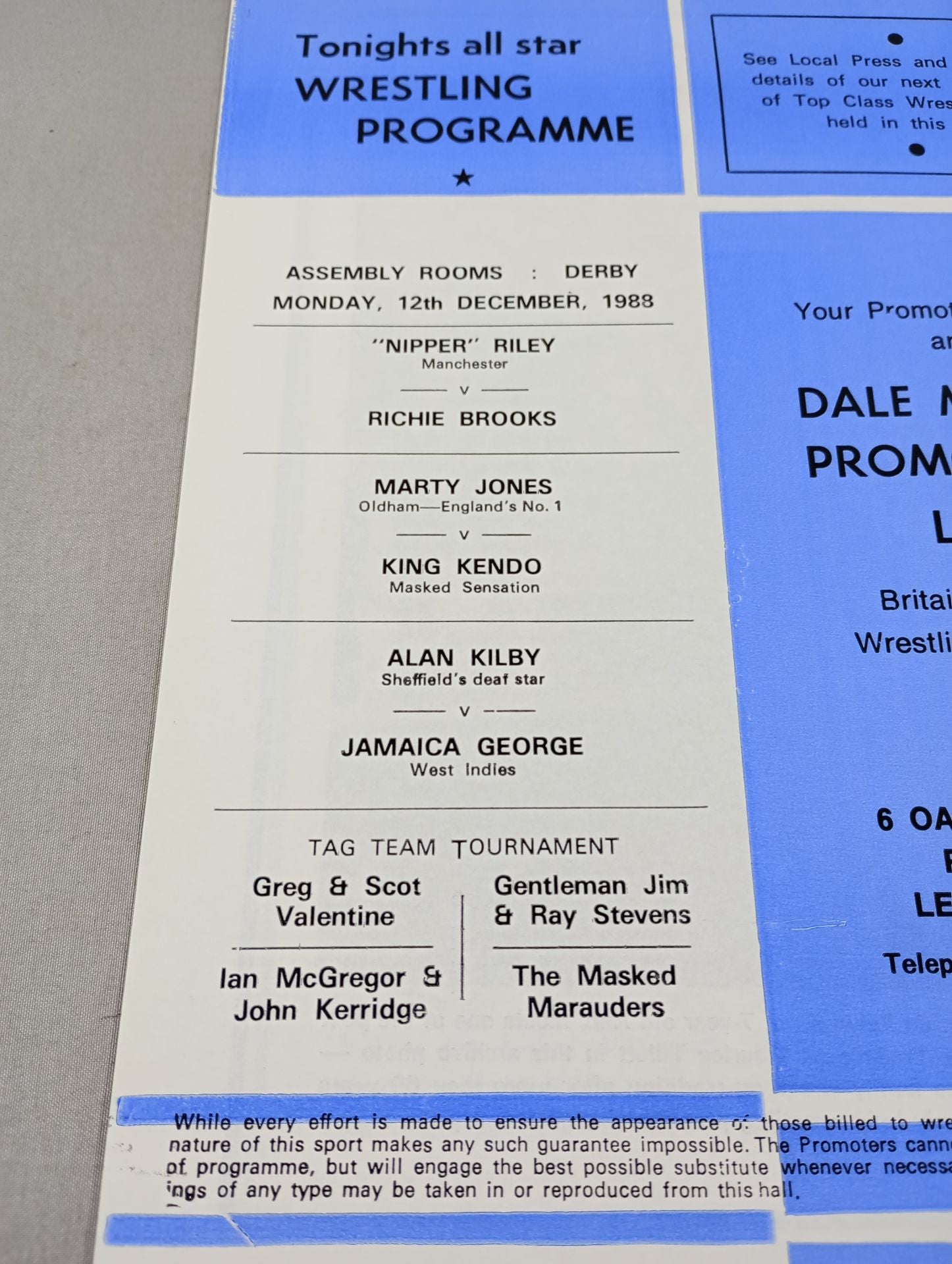 1988年 全編英語表記印刷対戦カード:“ニッパー”ライリーvsリッチー・ブルックス