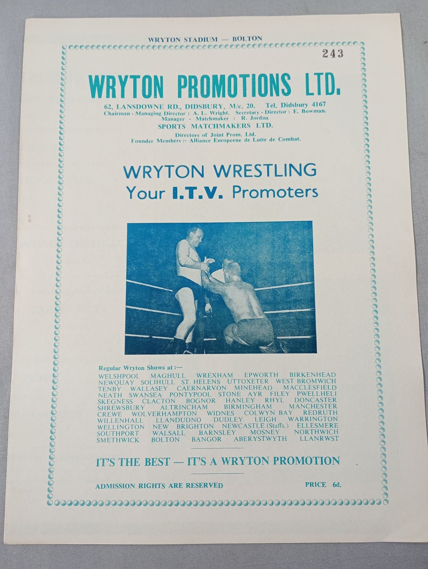 1966年 会場:イギリス ボルトン ライトンスタジアム / 全編英語印刷対戦カード:マイク・イーガーズvsミスター・ジャッキー“TV”パロ(ジャッキー・パロ) 243