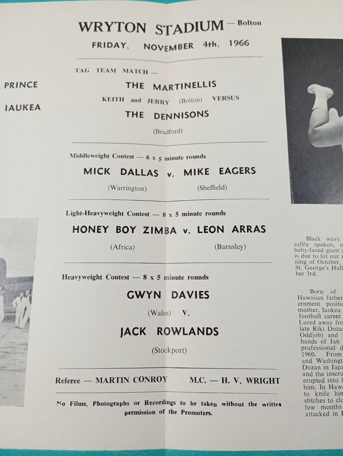 1966年 会場:イギリス ボルトン ライトンスタジアム / 全編英語印刷対戦カード:ザ・マルティネリスvsザ・ドニソンズ 154