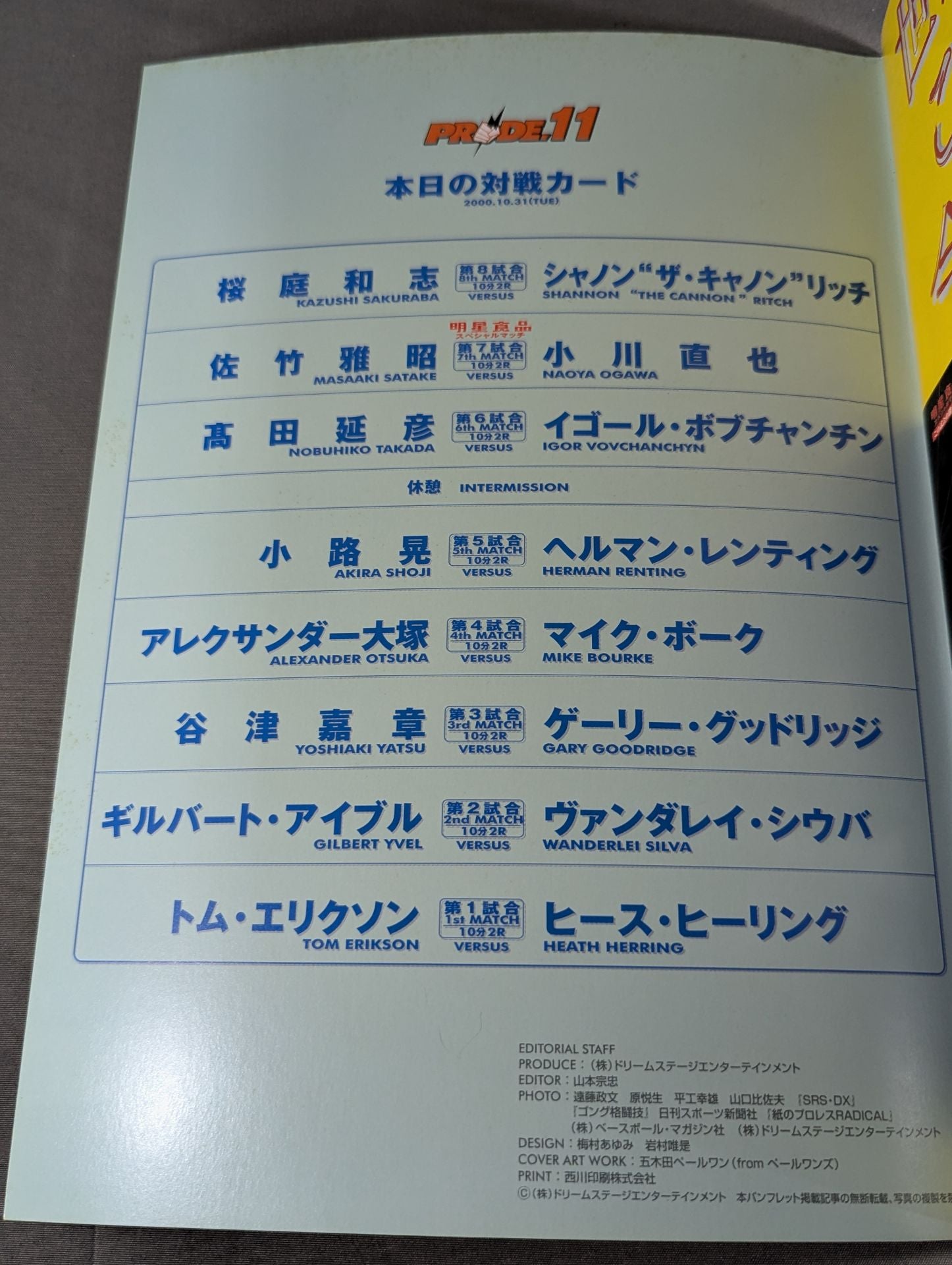 2000年 会場:大阪城ホール / 印刷対戦カード:桜庭和志vsシャノン“ザ・キャノン”リッチ / 佐竹雅昭vs小川直也 / 高田延彦vsイゴール・ボブチャンチン