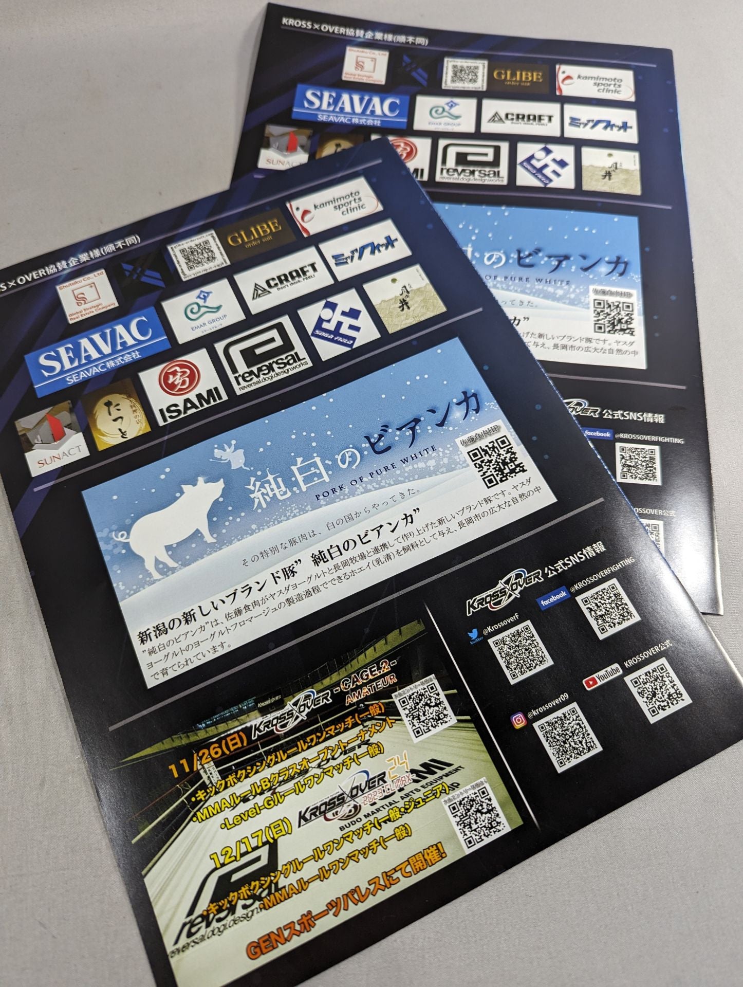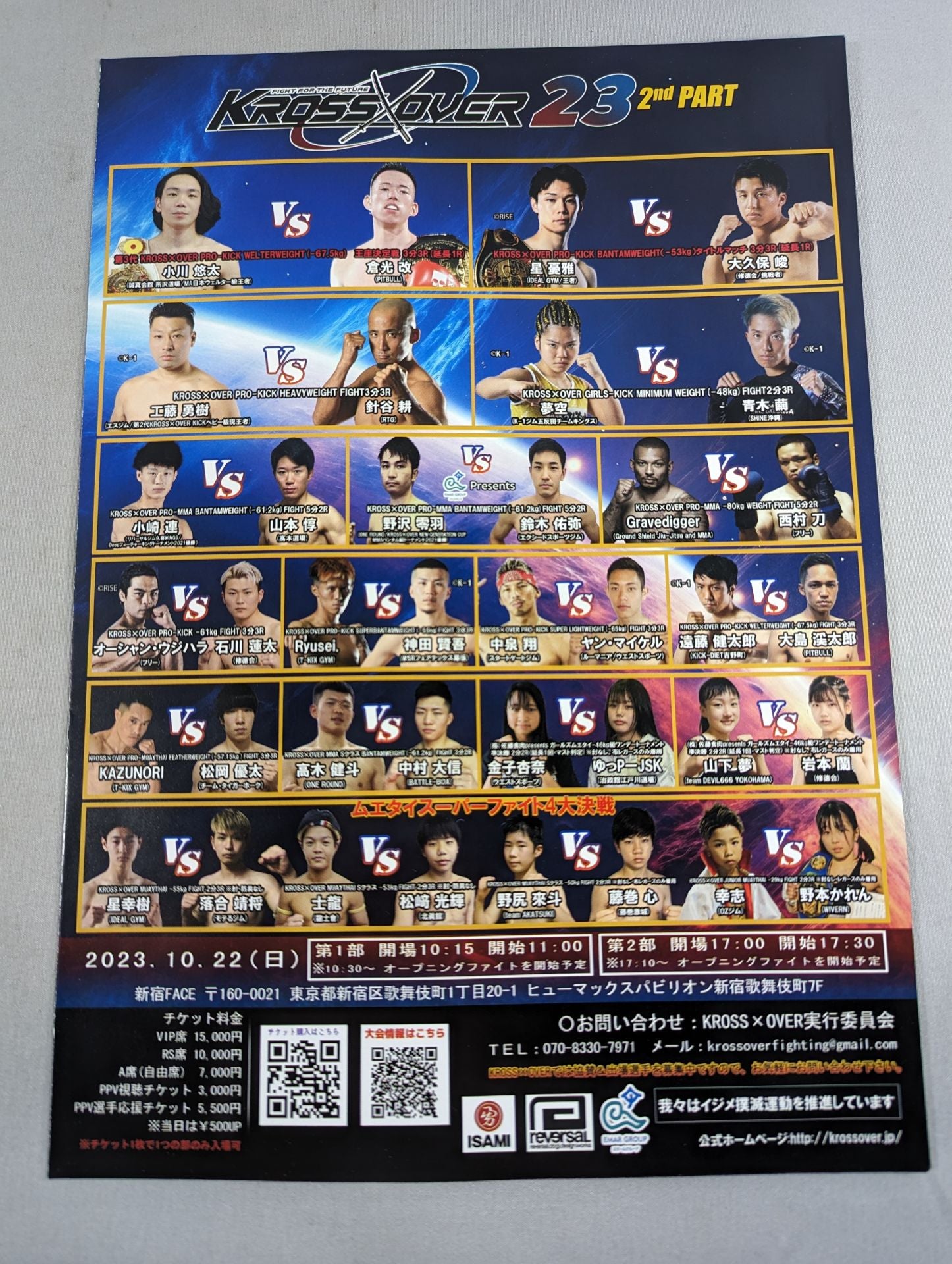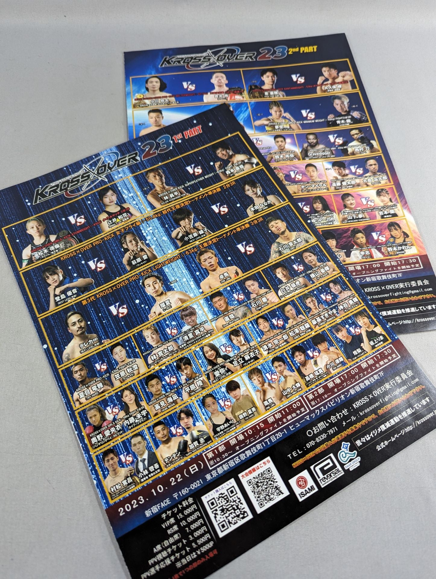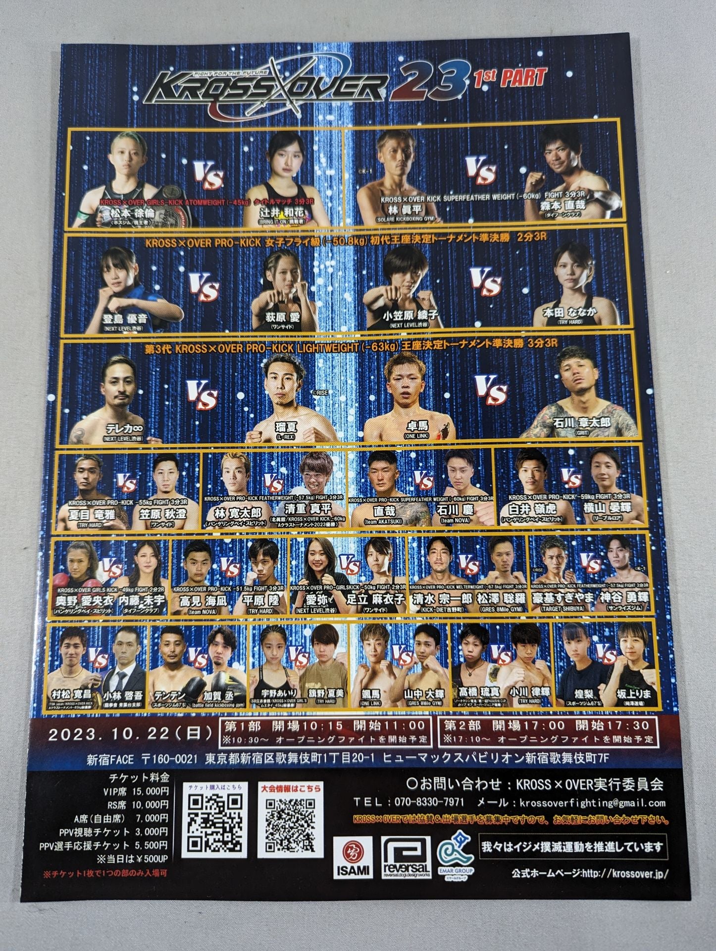 2023年 会場:新宿FACE / 印刷対戦カード:(第1部)【KROSS×OVER GIRLS-KICK ATOMWEIGHT(-45kg)タイトルマッチ】松本徐倫vs辻井和花/(第2部)【KROSS×OVER PRO KICK BANTAMWEIGHT(-53kg)タイトルマッチ】星憂雅vs大久保峻