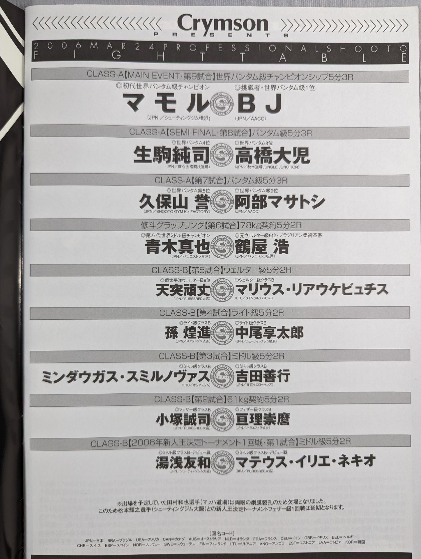 2006年 会場:後楽園ホール / 印刷対戦カード:【世界バンタム級チャンピオンシップ】マモルvsBJ
