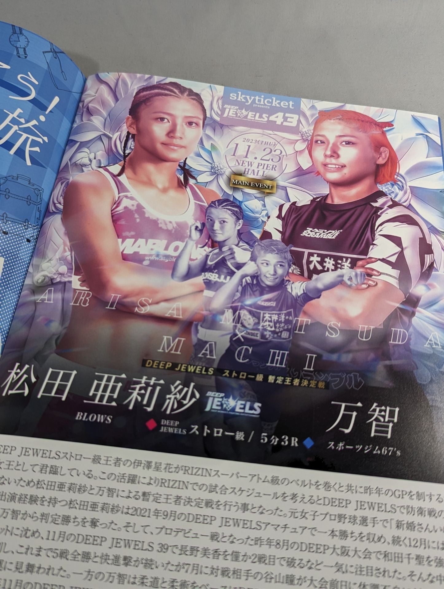 2023年 会場:東京・ニューピアホール / 印刷対戦カード:【DEEP JEWELSストロー級認定王者決定戦】松田亜莉沙vs万智 / 水野龍也vsSAINT 2部構成