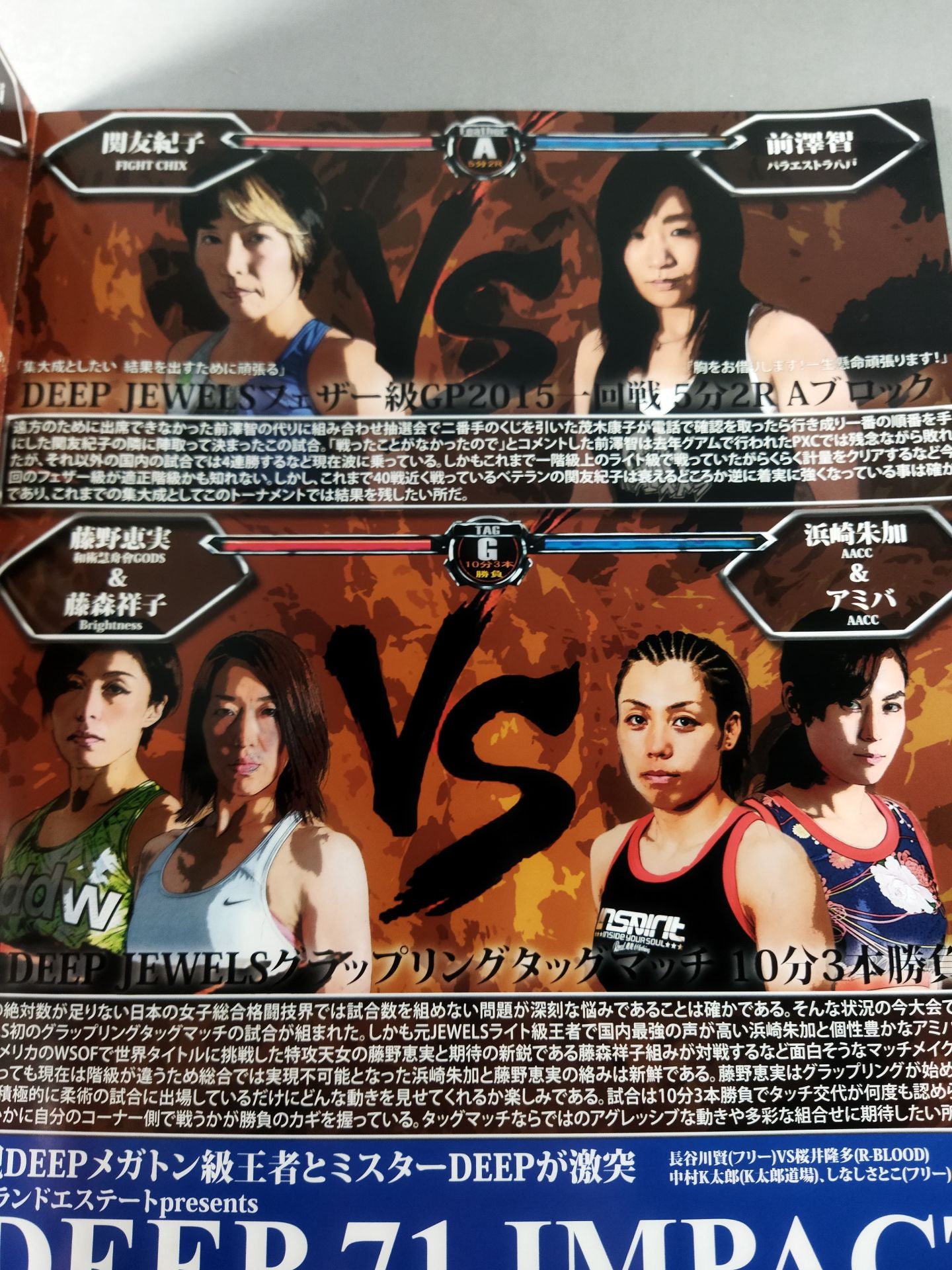 2015年 会場: 新宿FACE / 印刷対戦カード:【グラップリングタッグマッチ】藤野恵実&藤森祥子vs浜崎朱加&アミバ /
