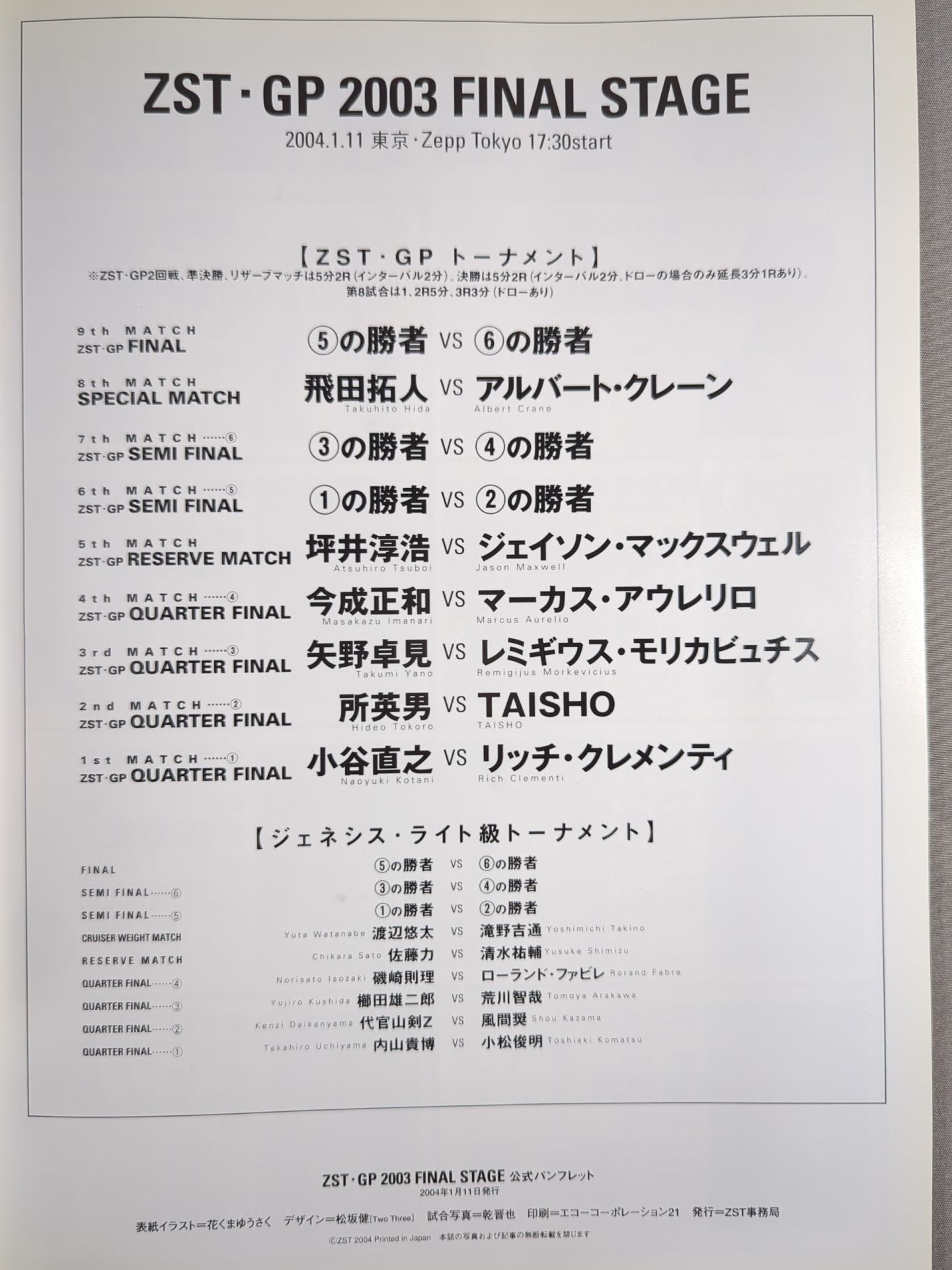 2004年 会場:Zepp Tokyo / 印刷対戦カード:【ZST・GP決勝】準決勝勝者vs準決勝勝者(マーカス・アウレリロvsリッチ・クレメンティ)
