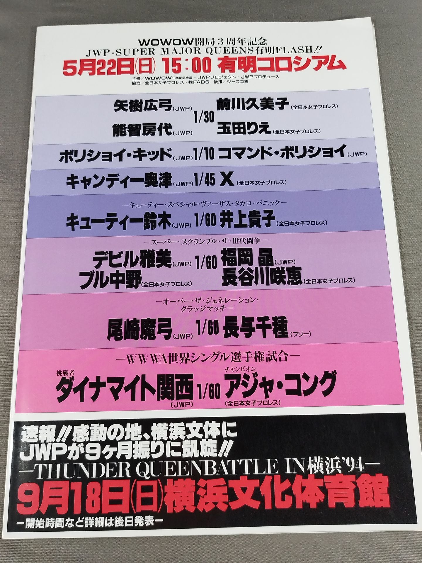 会場:有明コロシアム / 印刷対戦カード:【WWWA世界シングル選手権】ダイナマイト関西vsアジャ・コング
