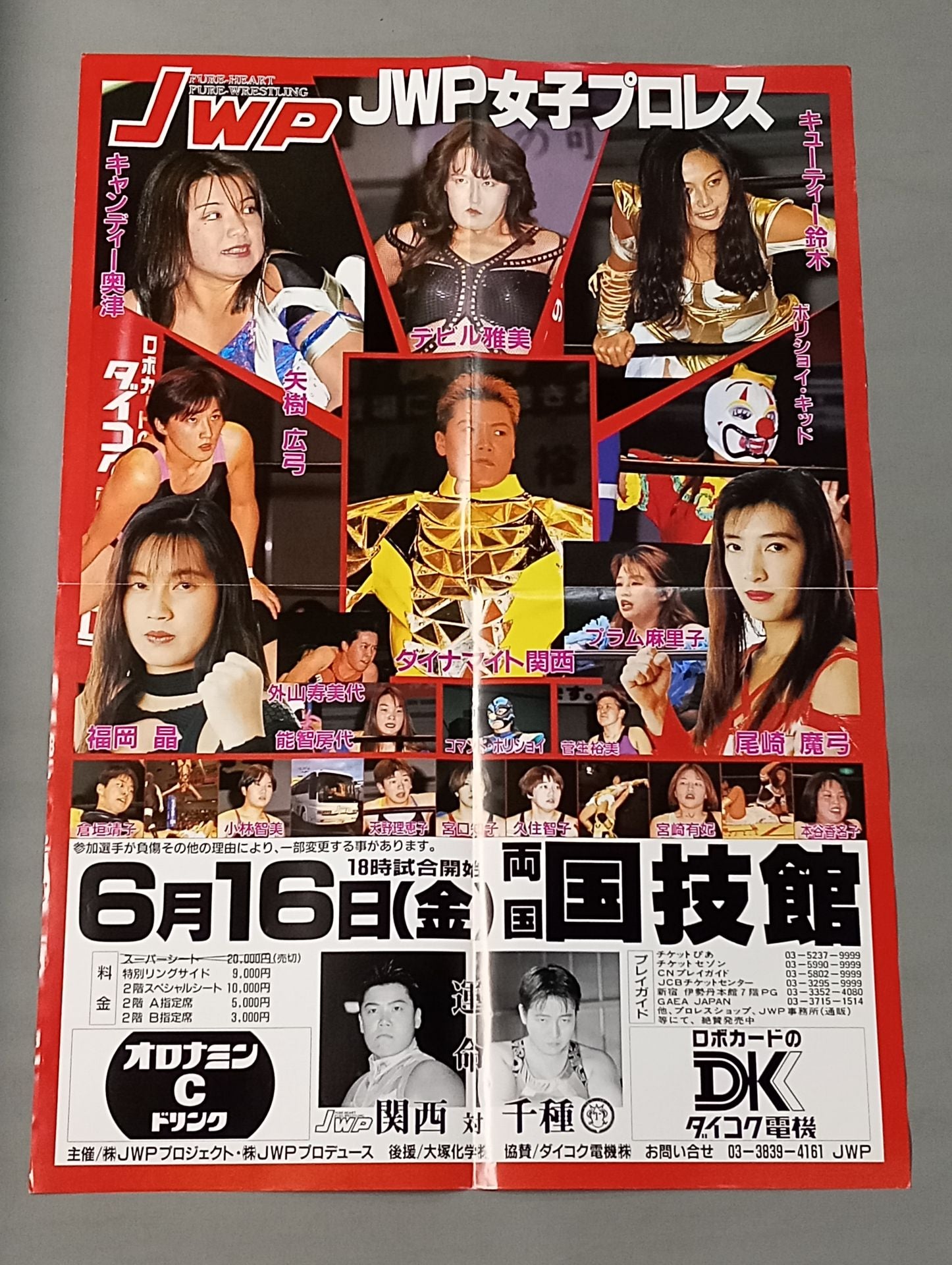 会場:両国国技館 / 別紙対戦カードなし:ダイナマイト関西VS長与千種 / デビル雅美&尾崎魔弓vsKAORU&福岡晶 / 【JWP認定ジュニア選手権試合・初代王座決定巴戦】キャンディー奥津vs矢樹広弓vs菅生裕美