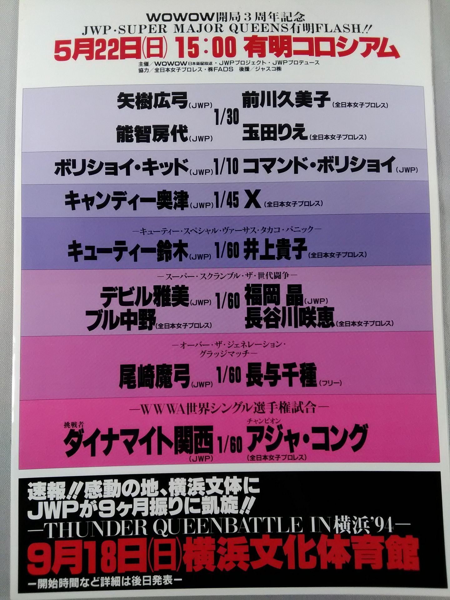 会場:有明コロシアム / 印刷対戦カード:【WWWA世界シングル選手権】ダイナマイト関西vsアジャ・コング