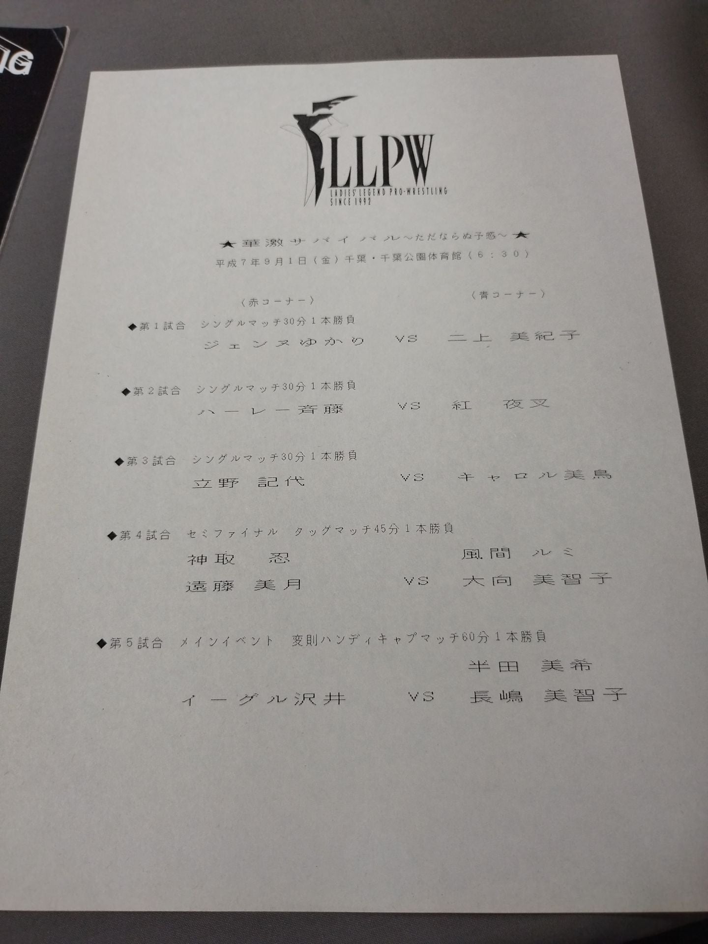 会場:千葉公園体育館 / 別紙対戦カードあり:【変速ハンディキャプマッチ】イーグル沢井vs長嶋美智子&半田美希 / 神取忍&遠藤美月vs風間ルミ&大向美智子 華激サバイバル~ただならぬ予感~