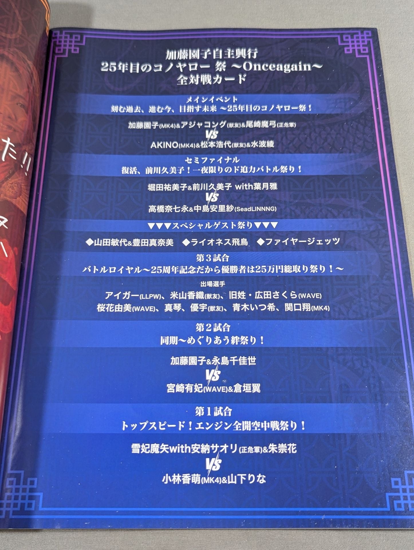 会場:後楽園ホール / 印刷対戦カード:加藤園子&アジャ・コング&尾崎魔弓vsAKINO&松本浩代&水波綾
