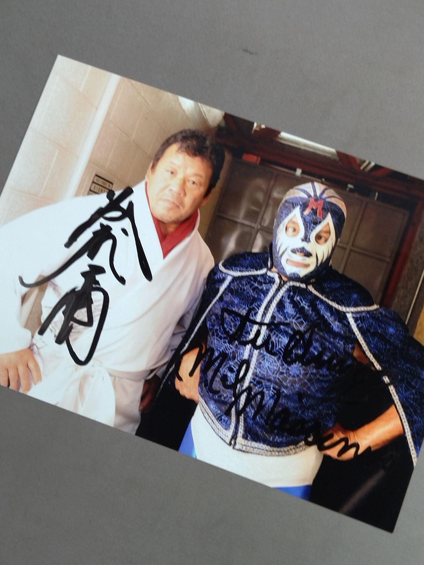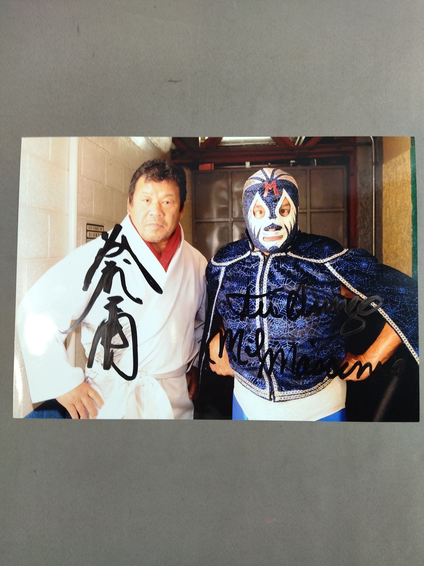ミル・マスカラス&藤波辰爾 直筆Wサイン入り ポートレート①