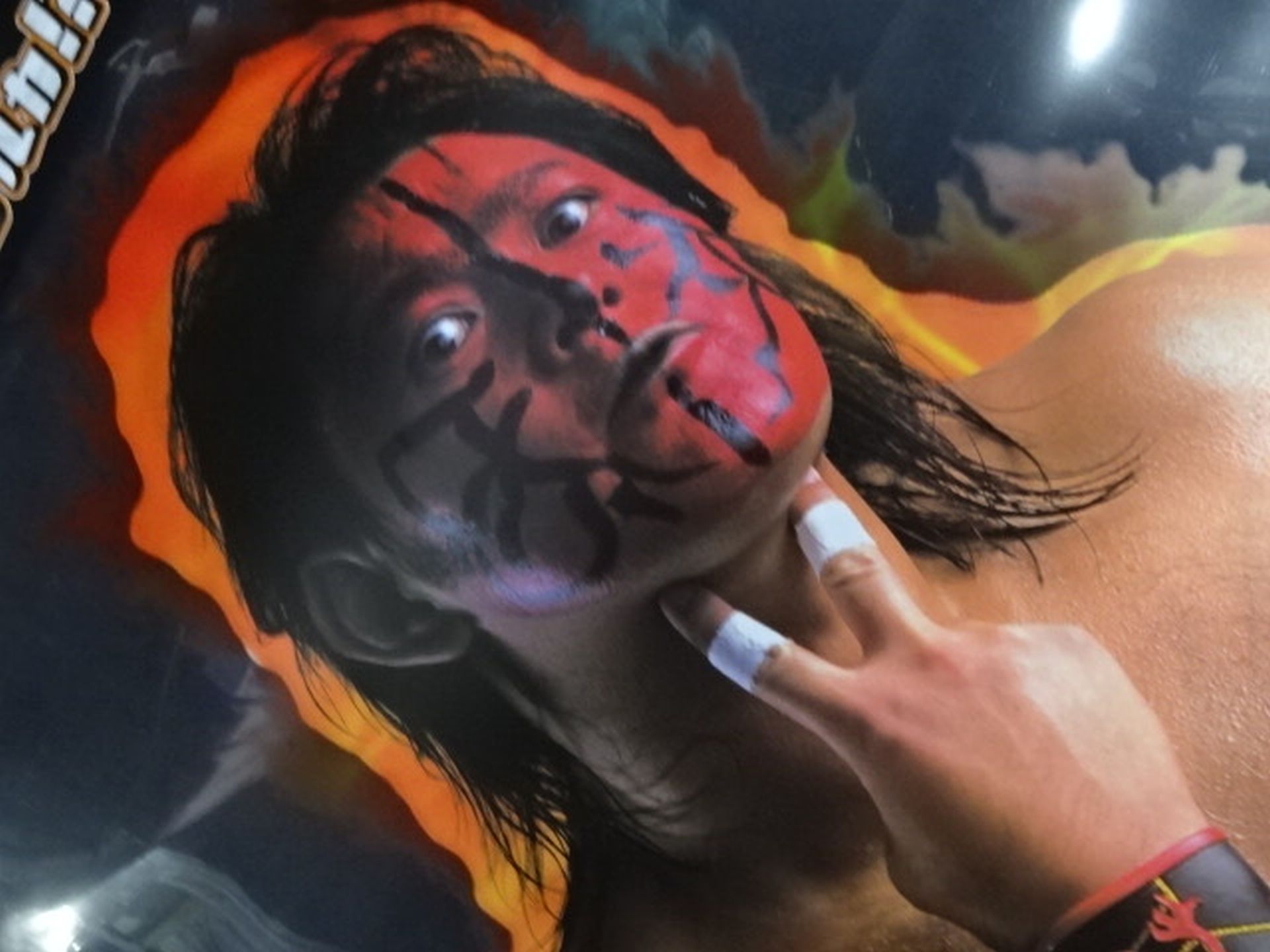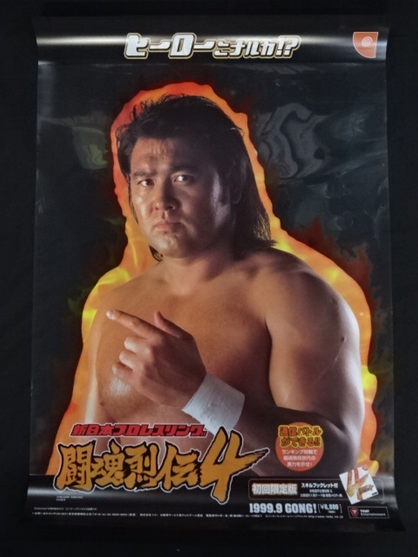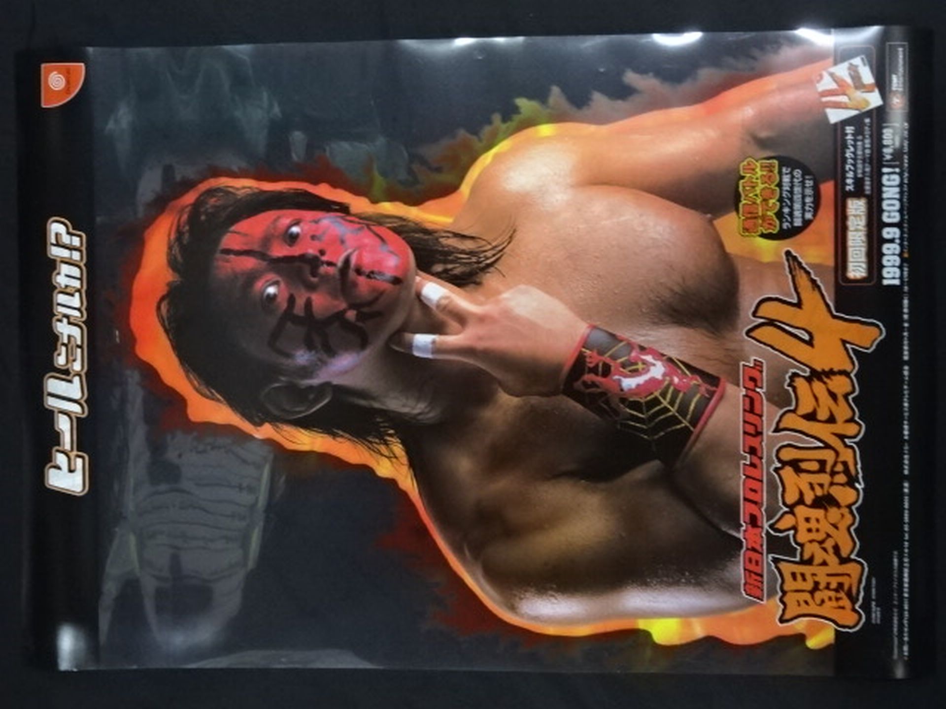 1999年 ヒーローは武藤敬司、ひっくり返すとヒールのムタ ドリキャスソフト「闘魂烈伝4」のプラスチック製両面印刷の販売促進用ポスター(タペストリー)